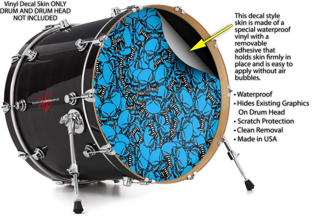Vinyl Decal Skin Wrap for 22" Bass Kick Drum Head Scattered Skulls Neon Blue - DRUM HEAD NOT INCLUDED