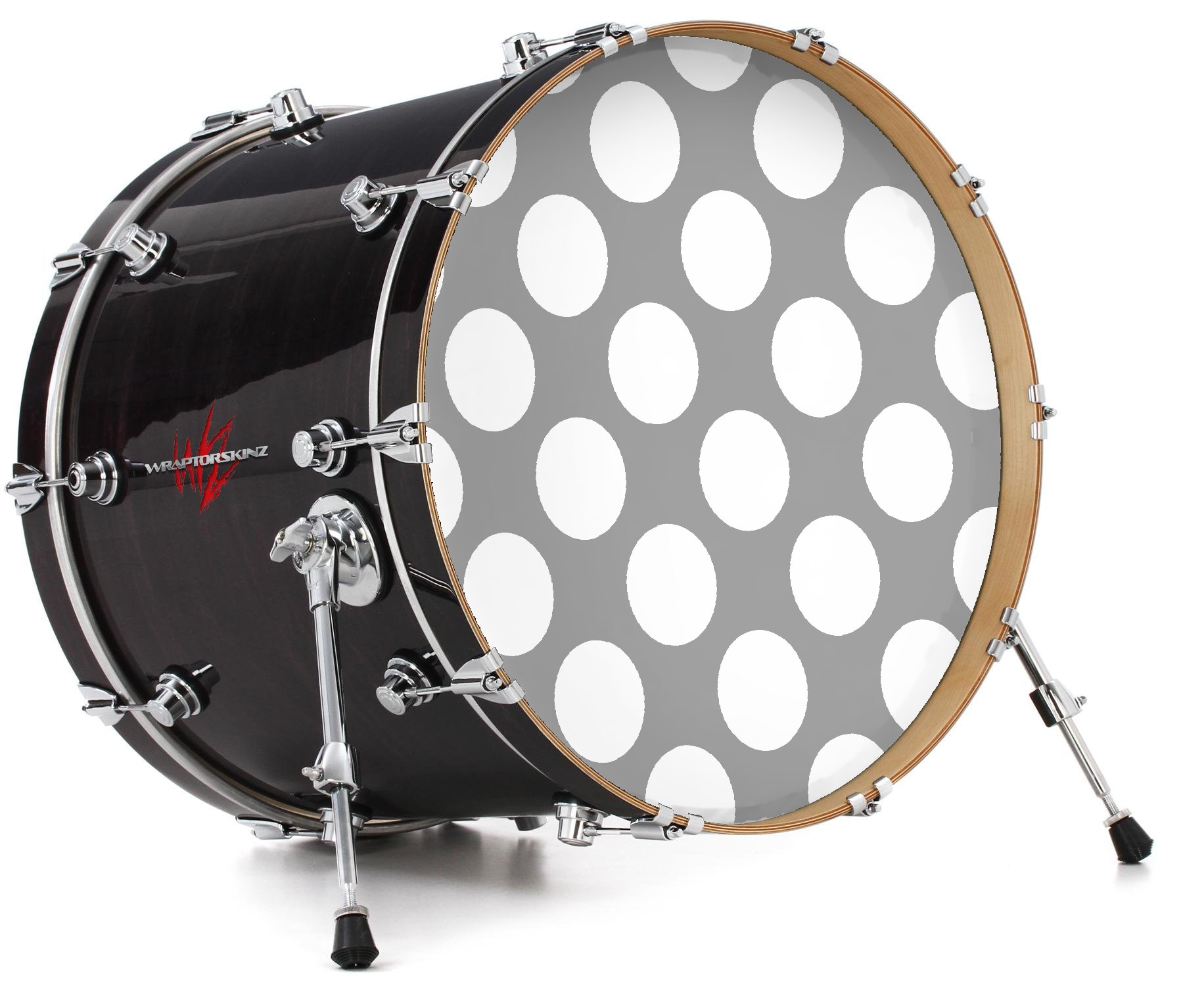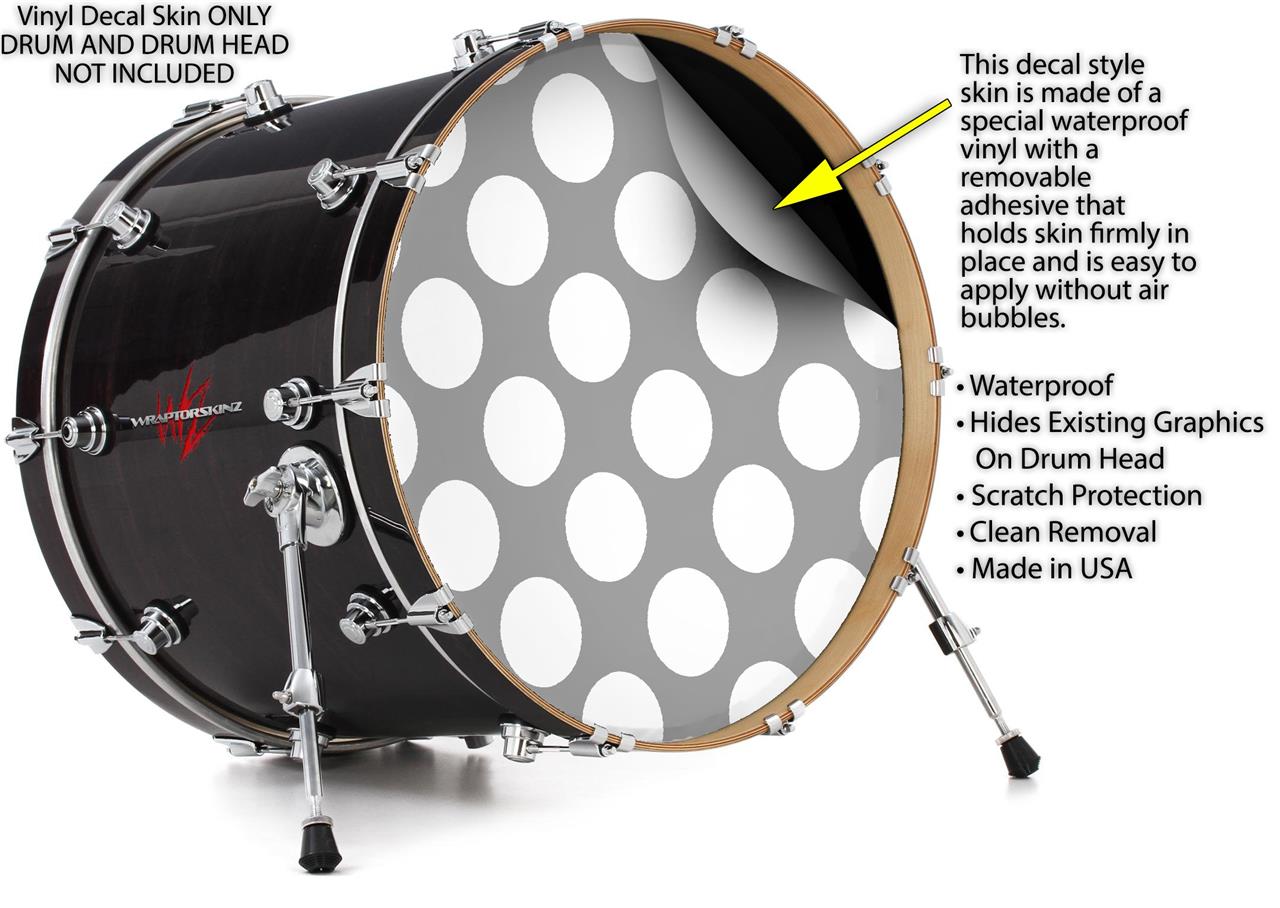 Vinyl Decal Skin Wrap for 22" Bass Kick Drum Head Kearas Polka Dots Whtie On Gray - DRUM HEAD NOT INCLUDED
