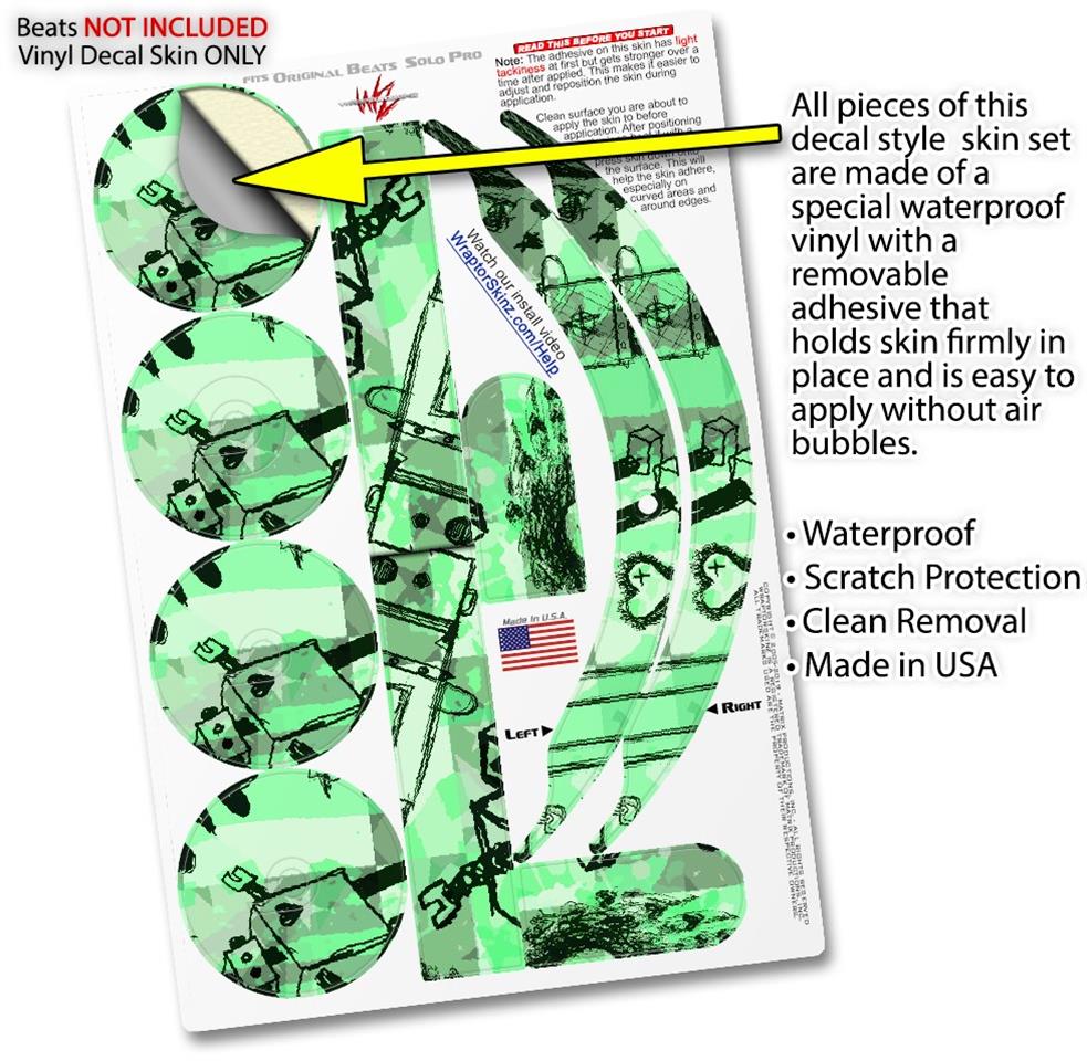 WraptorSkinz Skin Skin Decal Wrap works with Beats Solo Pro (Original) Headphones Scene Kid Sketches Green Skin Only BEATS NOT INCLUDED