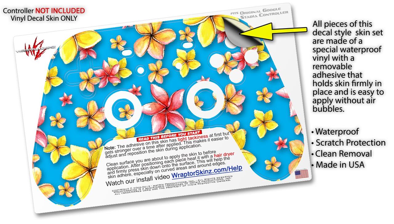 This product is in no way affiliated with or endorsed by Google. WraptorSkinz® skin wraps work with the Original Google Stadia version 1 Controller. Printed using superb photo quality designs and vibrant colors printed with special fade resistant inks that last even in direct sun for years. WraptorSkinz are a composite of two layers of commercial grade materials. The bottom layer is a soft, flexible vinyl with a special removable adhesive that is easily positioned, applied without air bubbles. Next, we print the bottom layer with UV protected, fade resistant inks that deliver superb photo quality designs in vibrant colors. Finally, we bond a professional grade laminate over the entire skin adding a glossy protective finish.