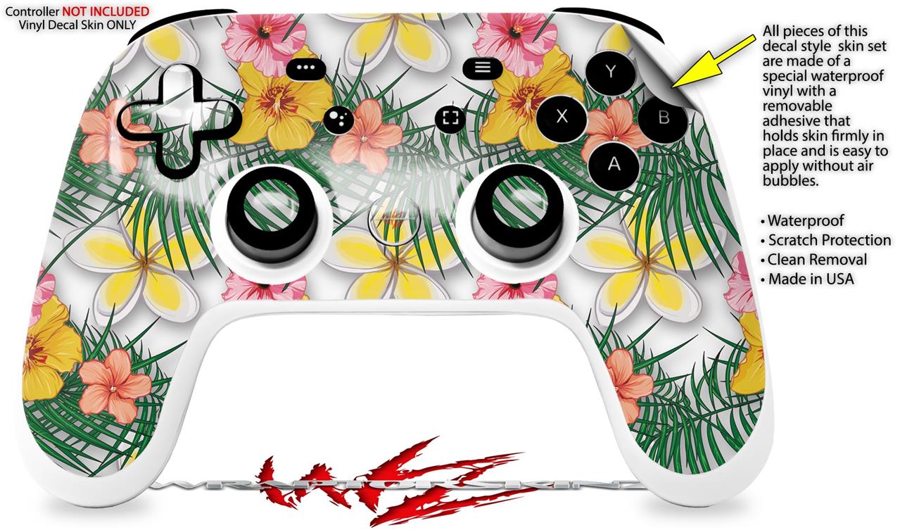 Skin Decal Wrap works with Original Google Stadia Controller Beach Flowers 02 White Skin Only CONTROLLER NOT INCLUDED