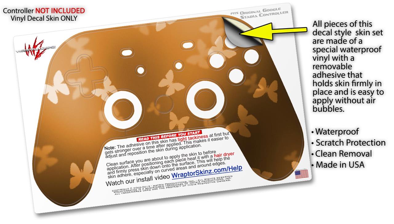 This product is in no way affiliated with or endorsed by Google. WraptorSkinz® skin wraps work with the Original Google Stadia version 1 Controller. Printed using superb photo quality designs and vibrant colors printed with special fade resistant inks that last even in direct sun for years. WraptorSkinz are a composite of two layers of commercial grade materials. The bottom layer is a soft, flexible vinyl with a special removable adhesive that is easily positioned, applied without air bubbles. Next, we print the bottom layer with UV protected, fade resistant inks that deliver superb photo quality designs in vibrant colors. Finally, we bond a professional grade laminate over the entire skin adding a glossy protective finish.