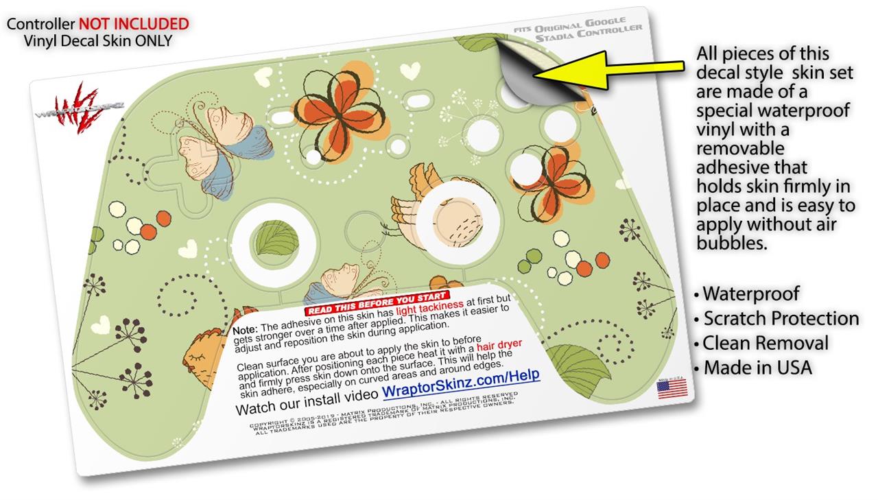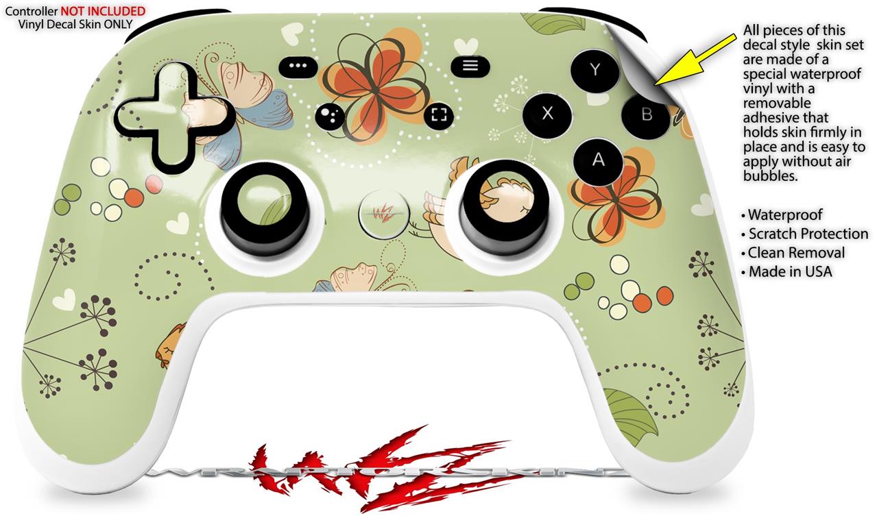 Skin Decal Wrap works with Original Google Stadia Controller Birds Butterflies and Flowers Skin Only CONTROLLER NOT INCLUDED
