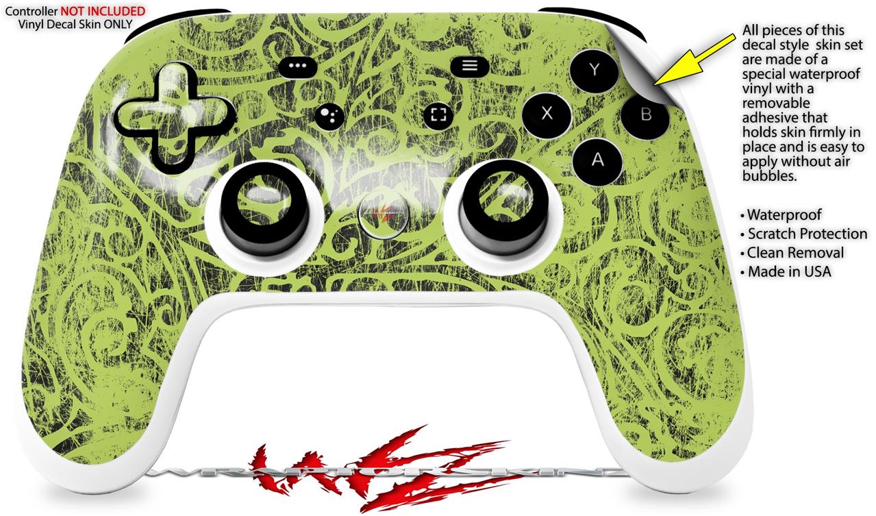 • Decal style skin wrap covers Stadia controller front surface only.