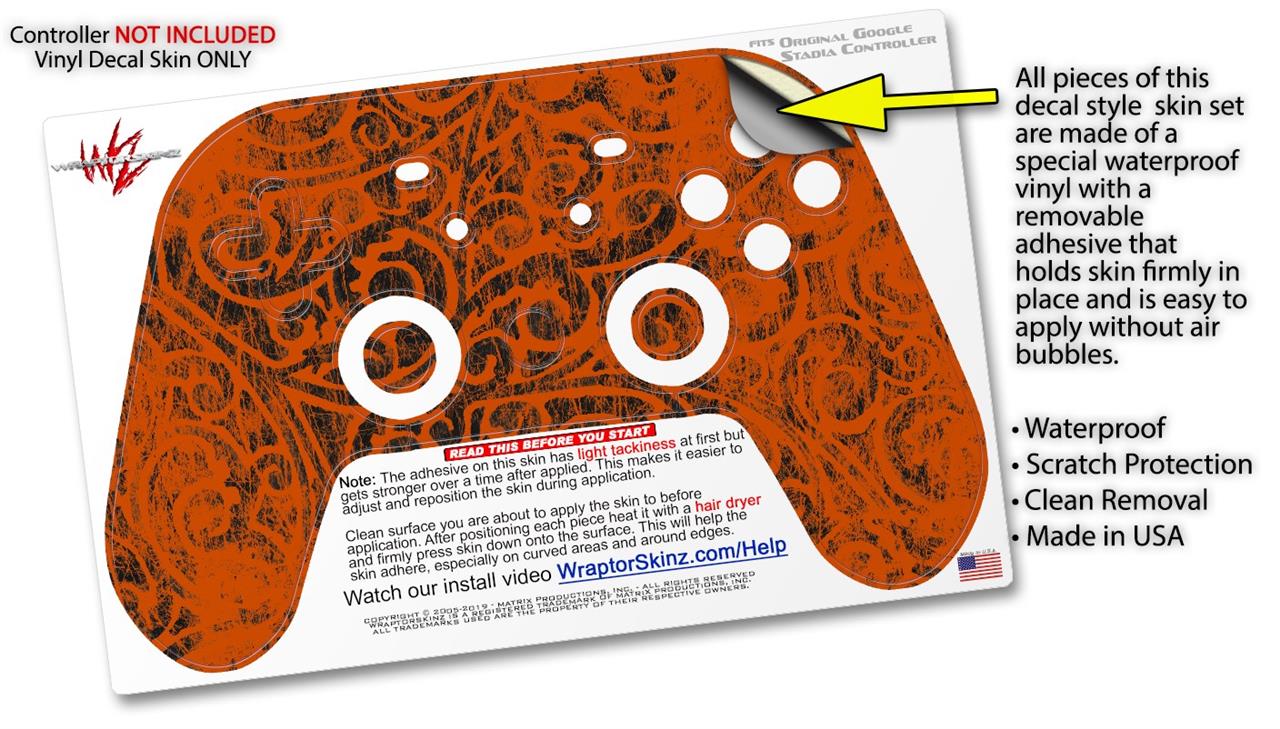 This product is in no way affiliated with or endorsed by Google. WraptorSkinz® skin wraps work with the Original Google Stadia version 1 Controller. Printed using superb photo quality designs and vibrant colors printed with special fade resistant inks that last even in direct sun for years. WraptorSkinz are a composite of two layers of commercial grade materials. The bottom layer is a soft, flexible vinyl with a special removable adhesive that is easily positioned, applied without air bubbles. Next, we print the bottom layer with UV protected, fade resistant inks that deliver superb photo quality designs in vibrant colors. Finally, we bond a professional grade laminate over the entire skin adding a glossy protective finish.