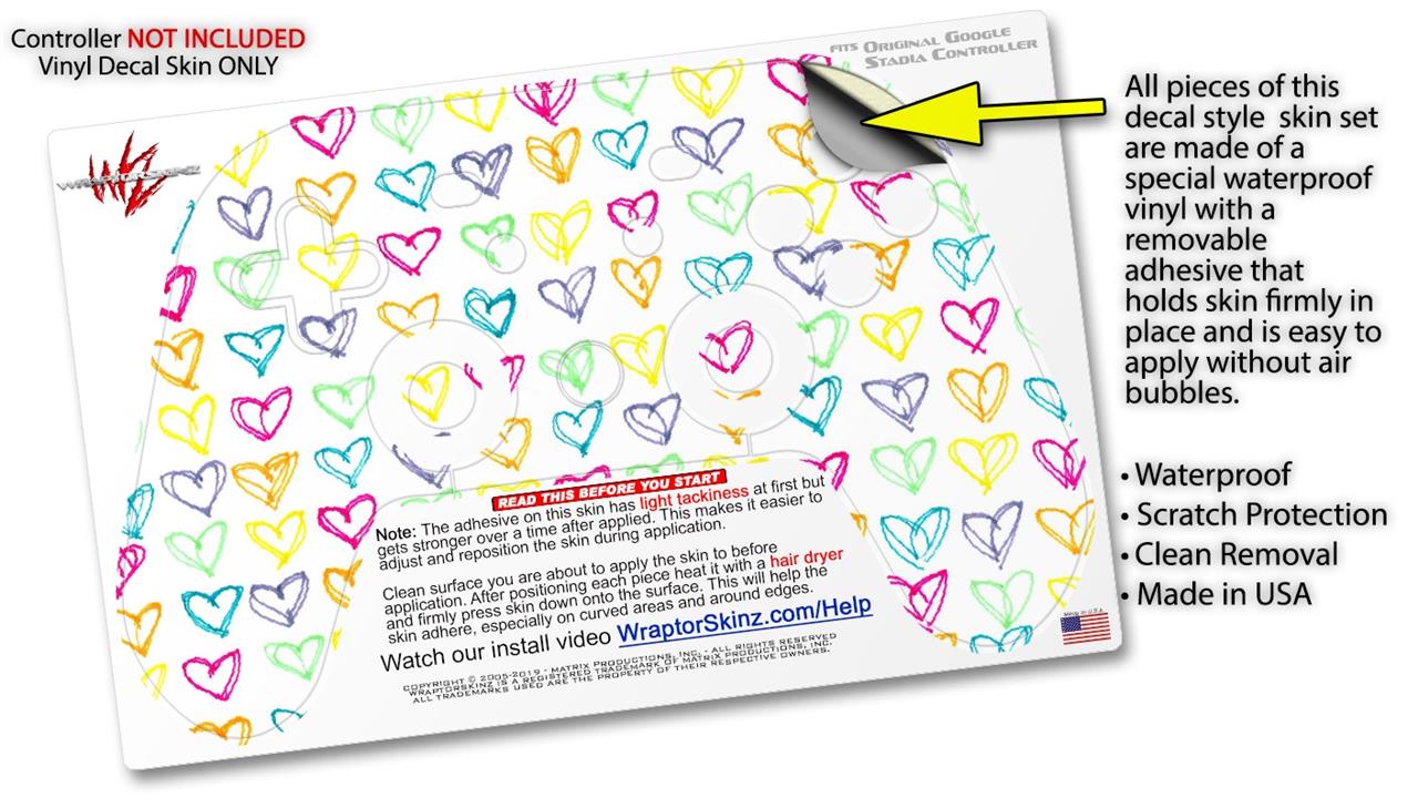 Skin Decal Wrap works with Original Google Stadia Controller Kearas Hearts White Skin Only CONTROLLER NOT INCLUDED