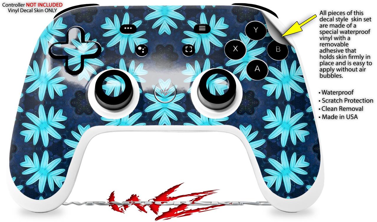 Skin Decal Wrap works with Original Google Stadia Controller Abstract Floral Blue Skin Only CONTROLLER NOT INCLUDED