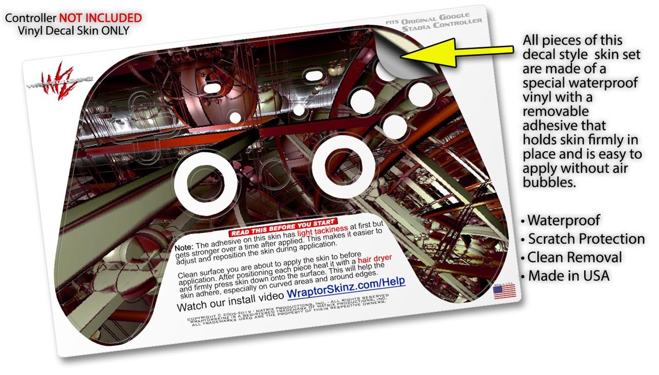 This product is in no way affiliated with or endorsed by Google. WraptorSkinz® skin wraps work with the Original Google Stadia version 1 Controller. Printed using superb photo quality designs and vibrant colors printed with special fade resistant inks that last even in direct sun for years. WraptorSkinz are a composite of two layers of commercial grade materials. The bottom layer is a soft, flexible vinyl with a special removable adhesive that is easily positioned, applied without air bubbles. Next, we print the bottom layer with UV protected, fade resistant inks that deliver superb photo quality designs in vibrant colors. Finally, we bond a professional grade laminate over the entire skin adding a glossy protective finish.