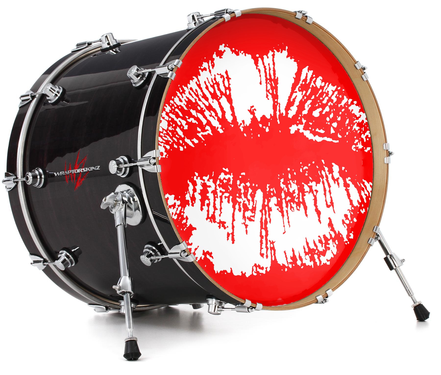 Vinyl Decal Skin Wrap for 20" Bass Kick Drum Head Big Kiss White on Red - DRUM HEAD NOT INCLUDED