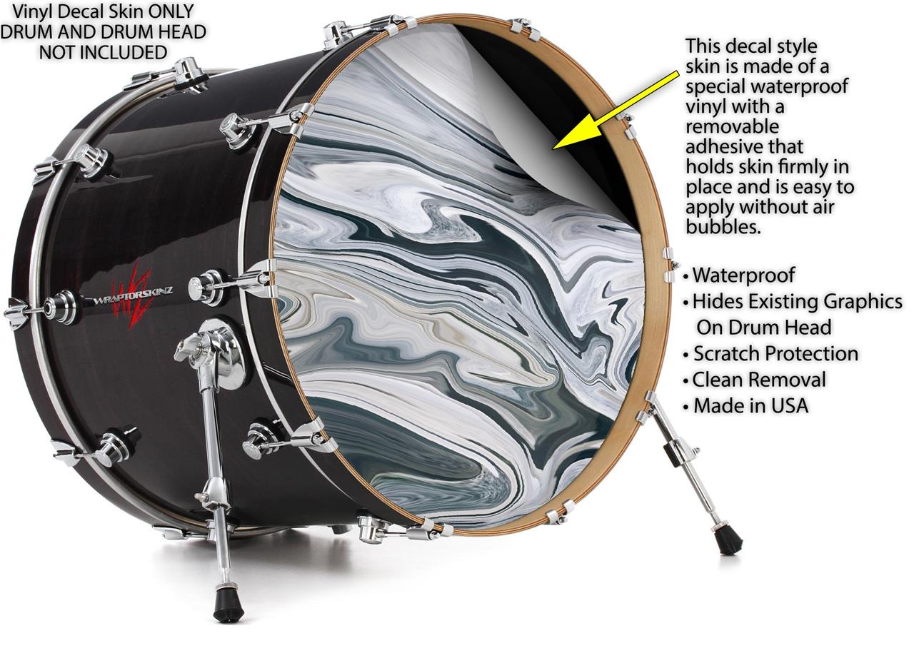 Decal Skin works with most 24" Bass Kick Drum Heads Blue Black Marble - DRUM HEAD NOT INCLUDED