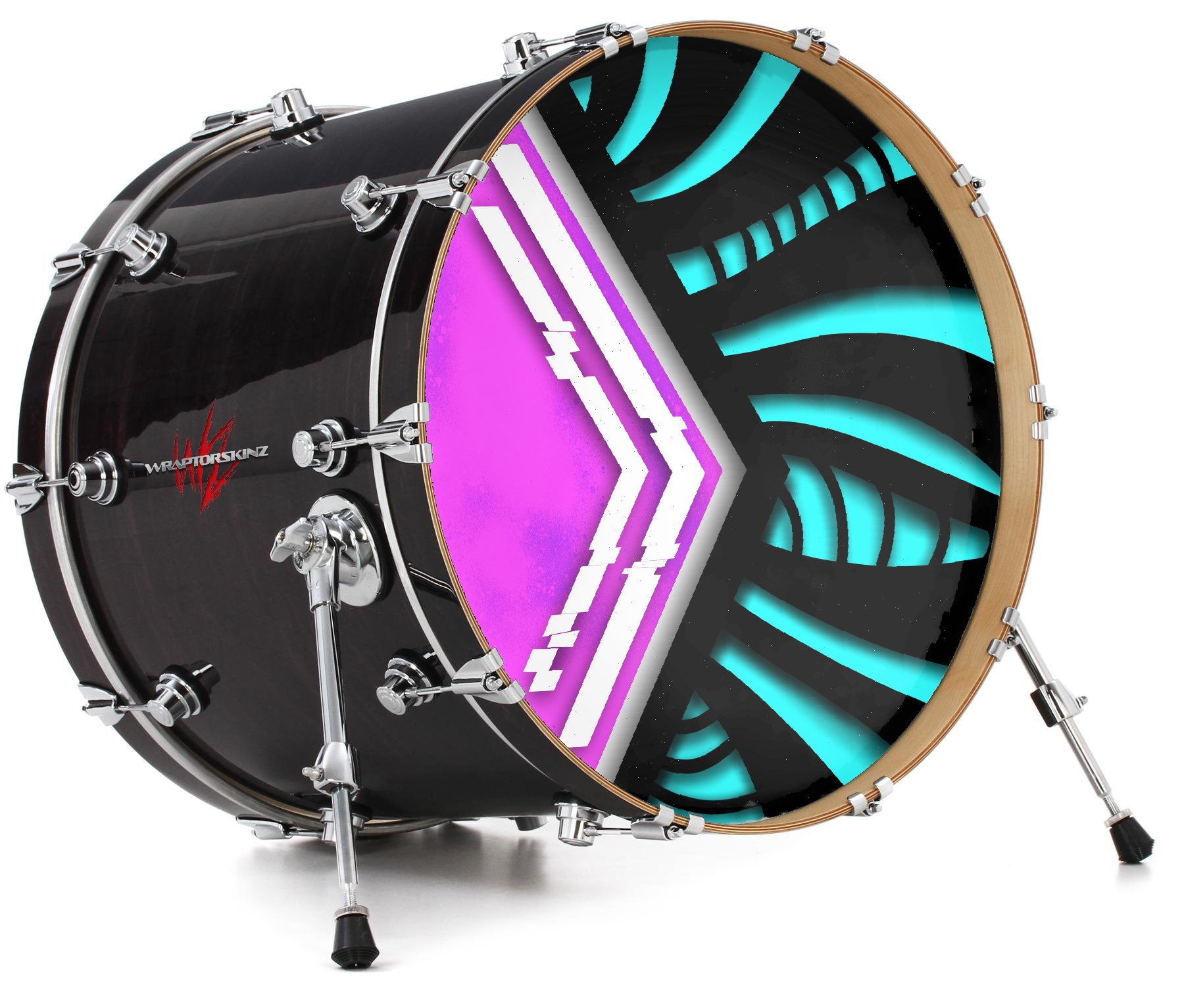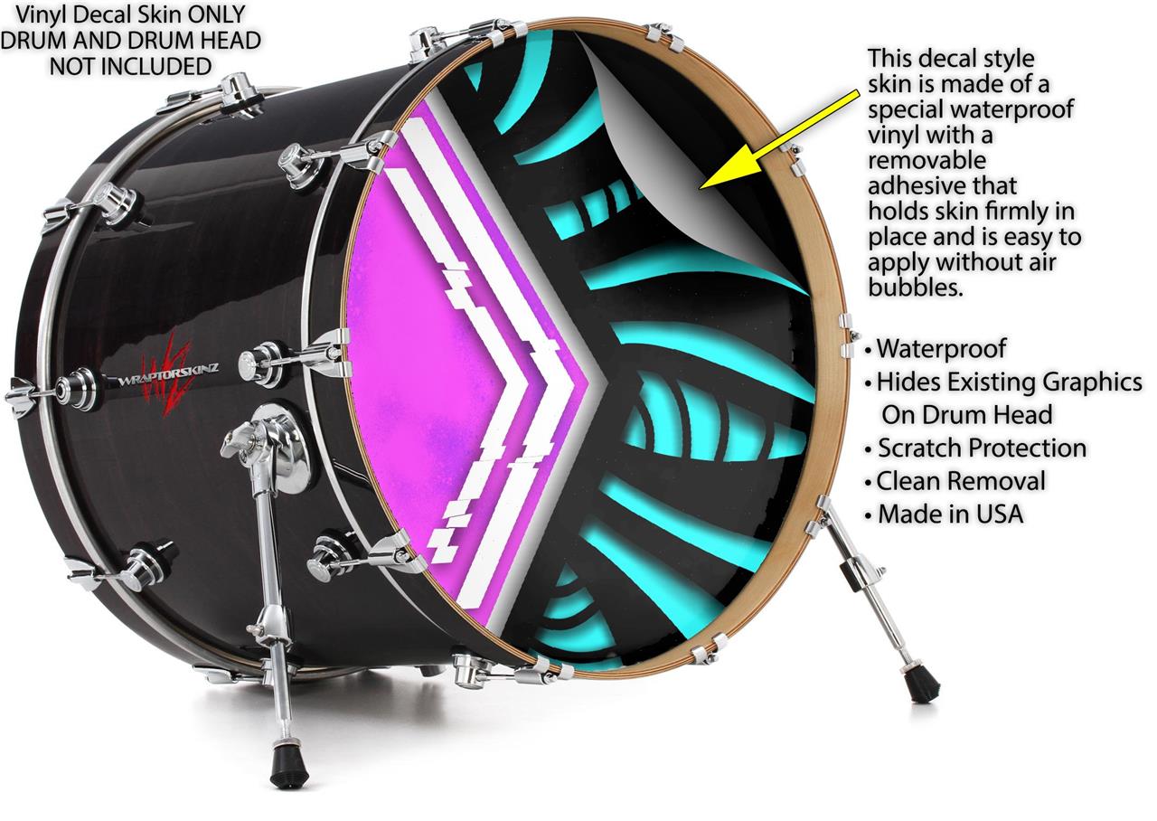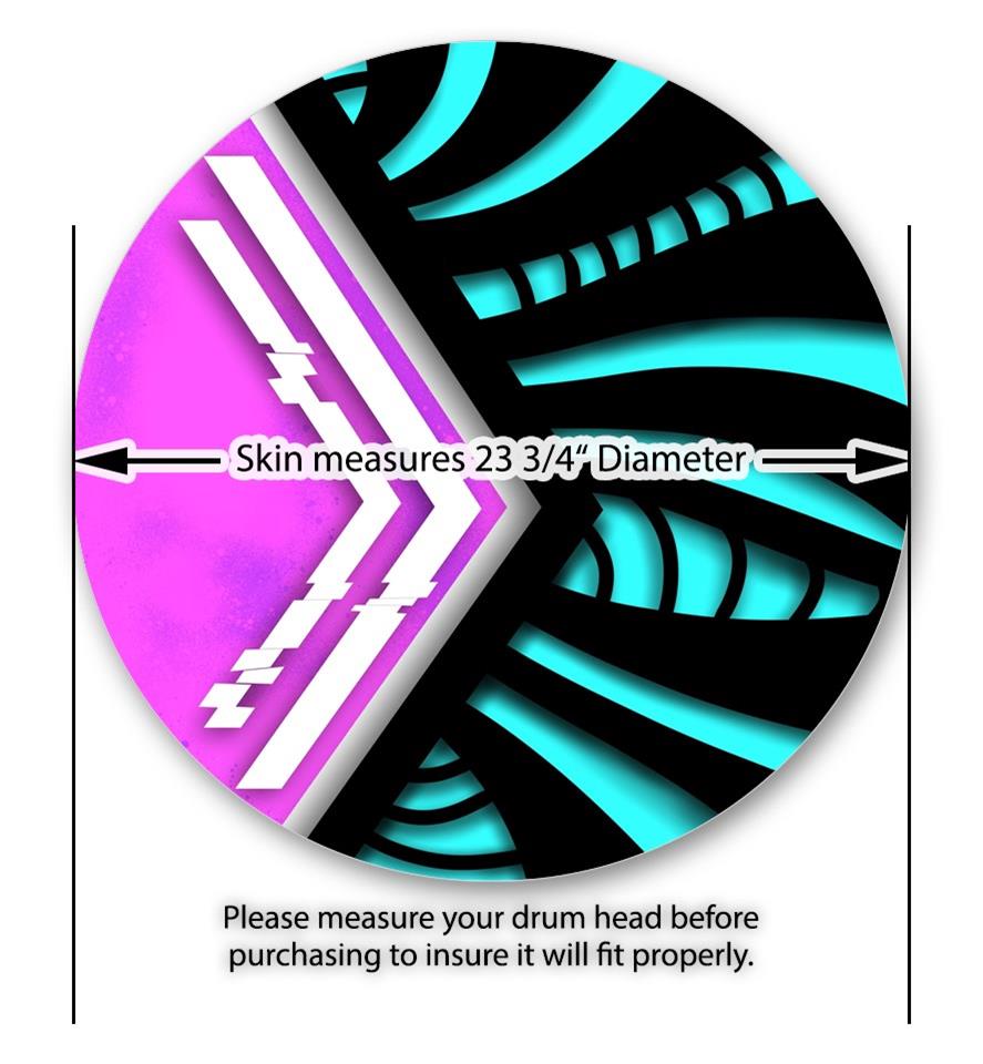 Decal Skin works with most 24" Bass Kick Drum Heads Black Waves Neon Teal Hot Pink - DRUM HEAD NOT INCLUDED