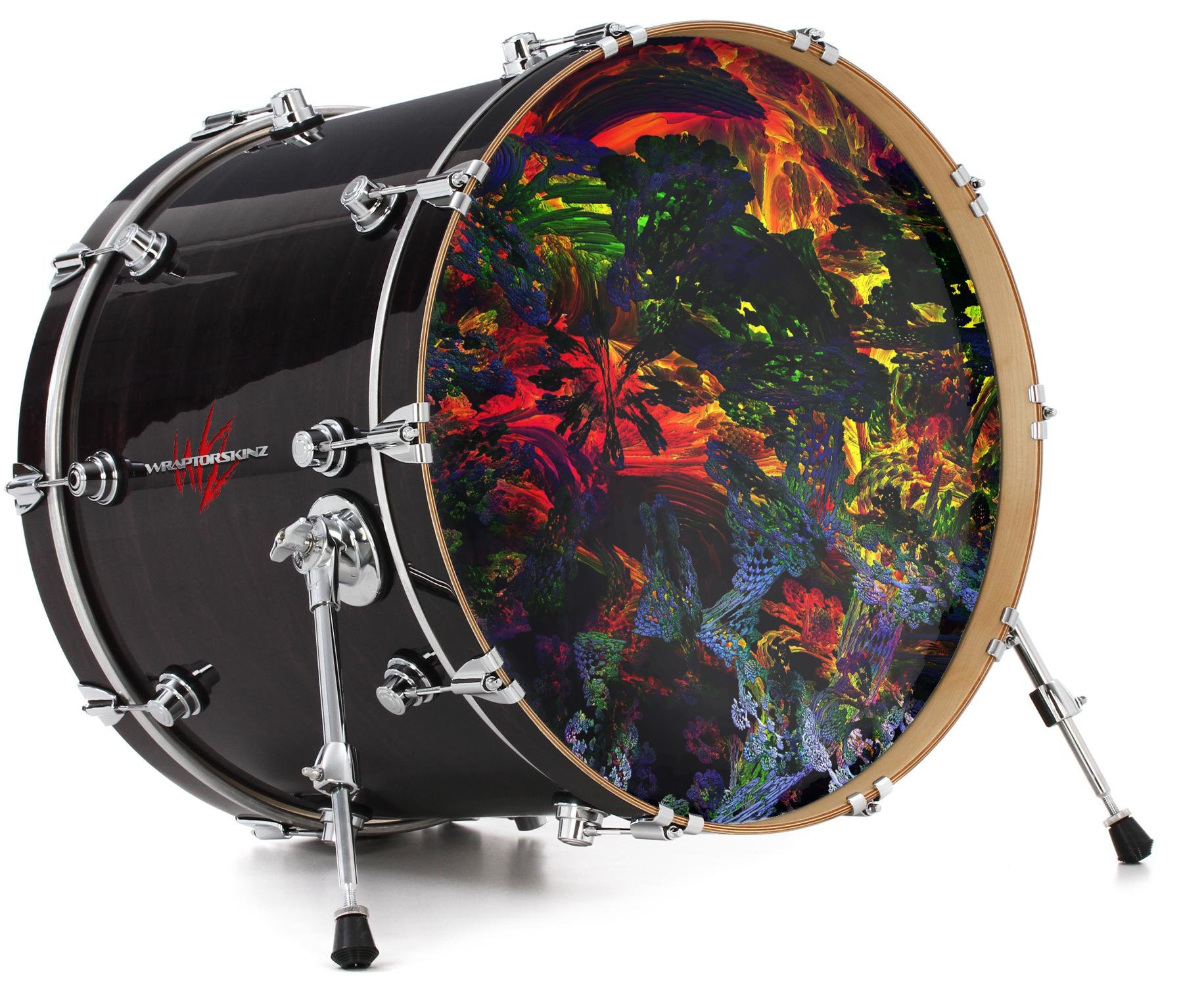 This design also available in other sizes. WraptorSkinz® skin wraps compatible with most kick drum heads. Printed using superb photo quality designs and vibrant colors printed with special fade resistant inks that last even in direct sun for years. WraptorSkinz are a composite three layer commercial grade materials vinyl. The bottom layer is a air release, grey block out removable adhesive that hides existing graphics on the drum head and is easily applied without air bubbles. The middle layer is a flexible vinyl printed with UV protected, fade resistant inks that deliver superb photo quality designs in vibrant colors. Finally, we bond a professional grade laminate over the entire skin adding a glossy protective finish.