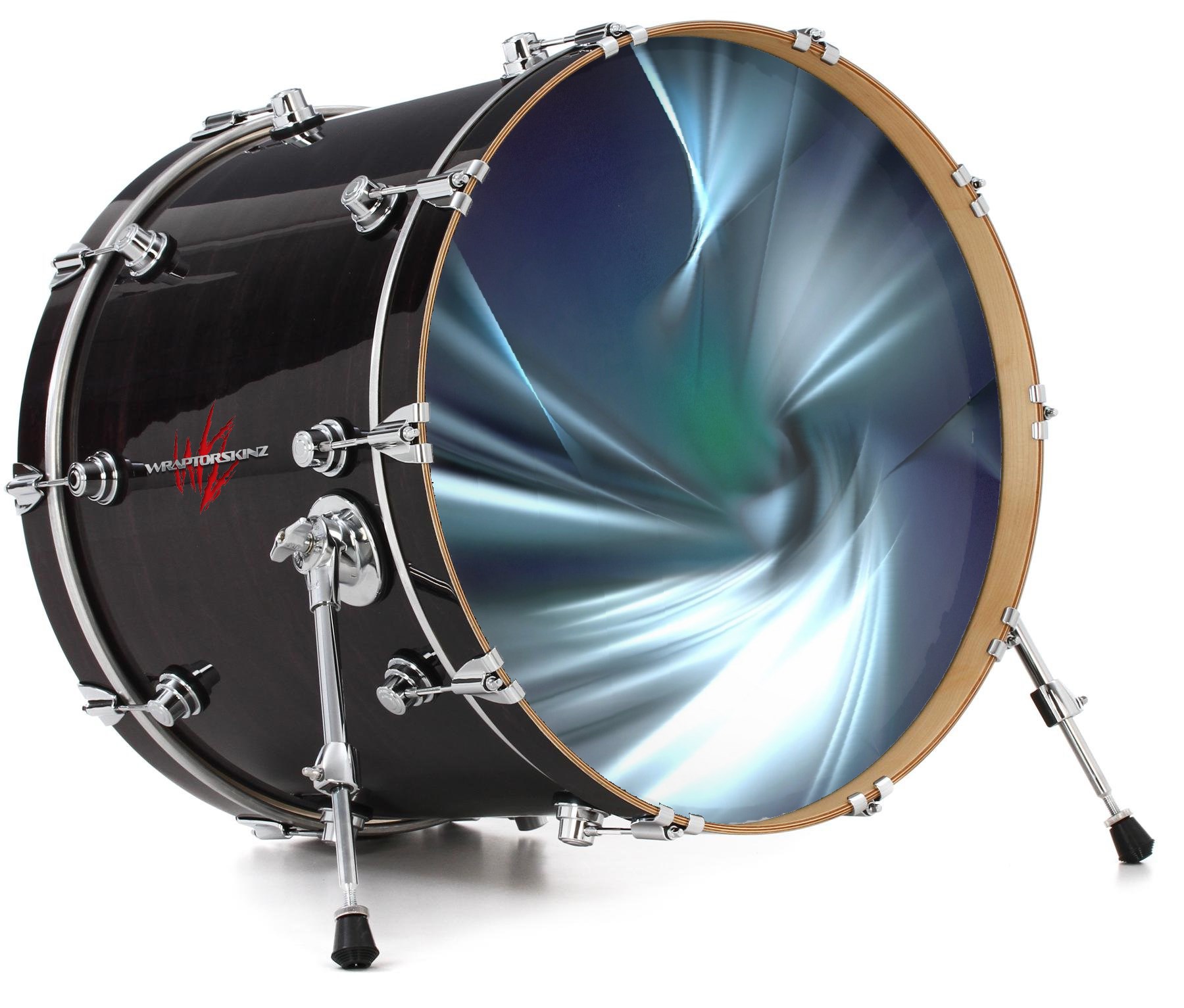 This design also available in other sizes. WraptorSkinz® skin wraps compatible with most kick drum heads. Printed using superb photo quality designs and vibrant colors printed with special fade resistant inks that last even in direct sun for years. WraptorSkinz are a composite three layer commercial grade materials vinyl. The bottom layer is a air release, grey block out removable adhesive that hides existing graphics on the drum head and is easily applied without air bubbles. The middle layer is a flexible vinyl printed with UV protected, fade resistant inks that deliver superb photo quality designs in vibrant colors. Finally, we bond a professional grade laminate over the entire skin adding a glossy protective finish.