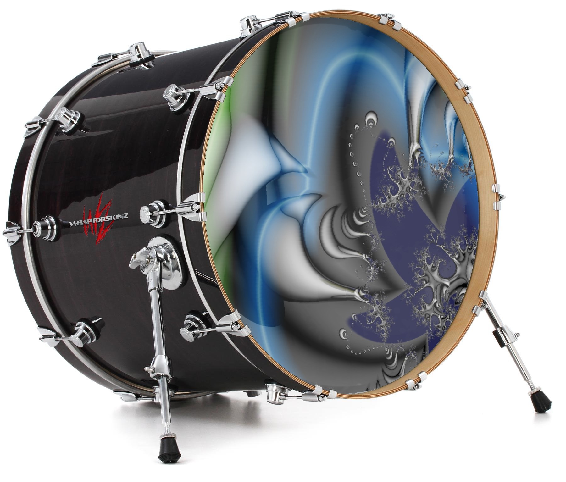 This design also available in other sizes. WraptorSkinz® skin wraps compatible with most kick drum heads. Printed using superb photo quality designs and vibrant colors printed with special fade resistant inks that last even in direct sun for years. WraptorSkinz are a composite three layer commercial grade materials vinyl. The bottom layer is a air release, grey block out removable adhesive that hides existing graphics on the drum head and is easily applied without air bubbles. The middle layer is a flexible vinyl printed with UV protected, fade resistant inks that deliver superb photo quality designs in vibrant colors. Finally, we bond a professional grade laminate over the entire skin adding a glossy protective finish.