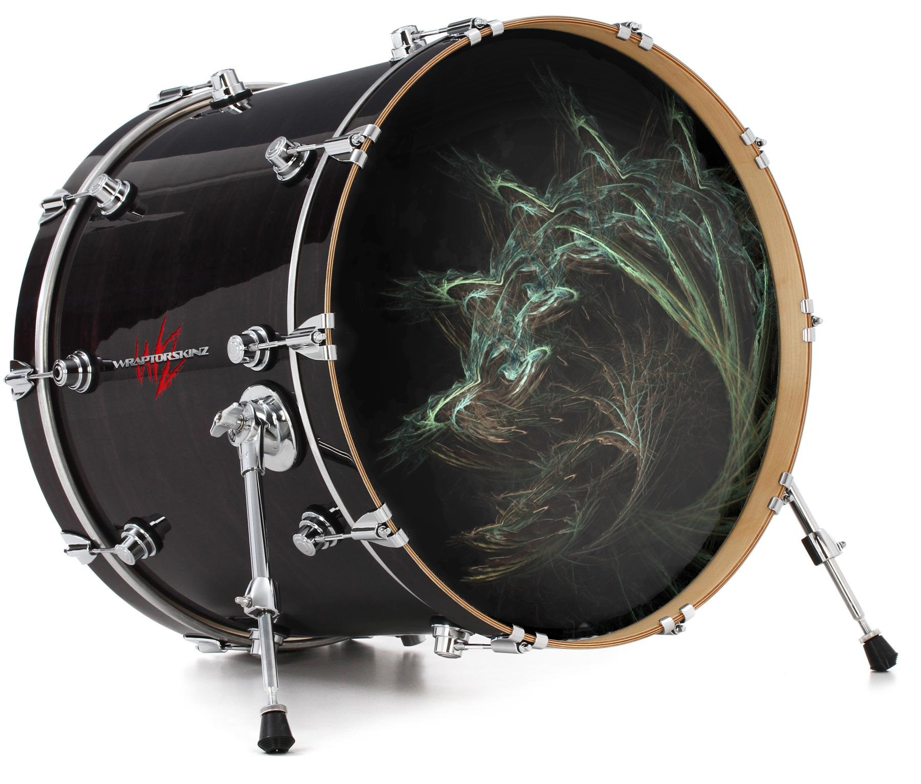 This design also available in other sizes. WraptorSkinz® skin wraps compatible with most kick drum heads. Printed using superb photo quality designs and vibrant colors printed with special fade resistant inks that last even in direct sun for years. WraptorSkinz are a composite three layer commercial grade materials vinyl. The bottom layer is a air release, grey block out removable adhesive that hides existing graphics on the drum head and is easily applied without air bubbles. The middle layer is a flexible vinyl printed with UV protected, fade resistant inks that deliver superb photo quality designs in vibrant colors. Finally, we bond a professional grade laminate over the entire skin adding a glossy protective finish.