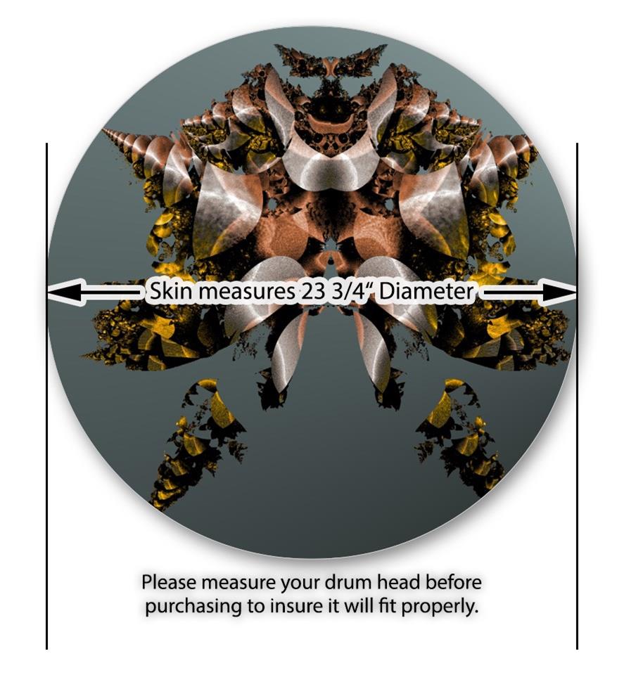 This design also available in other sizes. WraptorSkinz® skin wraps compatible with most kick drum heads. Printed using superb photo quality designs and vibrant colors printed with special fade resistant inks that last even in direct sun for years. WraptorSkinz are a composite three layer commercial grade materials vinyl. The bottom layer is a air release, grey block out removable adhesive that hides existing graphics on the drum head and is easily applied without air bubbles. The middle layer is a flexible vinyl printed with UV protected, fade resistant inks that deliver superb photo quality designs in vibrant colors. Finally, we bond a professional grade laminate over the entire skin adding a glossy protective finish.