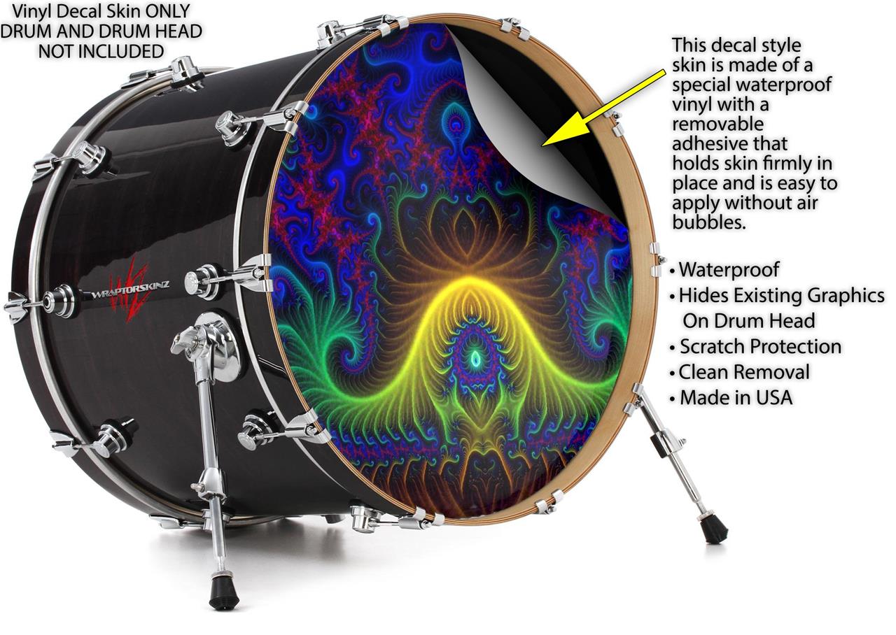 This design also available in other sizes. WraptorSkinz® skin wraps compatible with most kick drum heads. Printed using superb photo quality designs and vibrant colors printed with special fade resistant inks that last even in direct sun for years. WraptorSkinz are a composite three layer commercial grade materials vinyl. The bottom layer is a air release, grey block out removable adhesive that hides existing graphics on the drum head and is easily applied without air bubbles. The middle layer is a flexible vinyl printed with UV protected, fade resistant inks that deliver superb photo quality designs in vibrant colors. Finally, we bond a professional grade laminate over the entire skin adding a glossy protective finish.