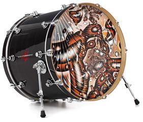 This design also available in other sizes. WraptorSkinz® skin wraps compatible with most kick drum heads. Printed using superb photo quality designs and vibrant colors printed with special fade resistant inks that last even in direct sun for years. WraptorSkinz are a composite three layer commercial grade materials vinyl. The bottom layer is a air release, grey block out removable adhesive that hides existing graphics on the drum head and is easily applied without air bubbles. The middle layer is a flexible vinyl printed with UV protected, fade resistant inks that deliver superb photo quality designs in vibrant colors. Finally, we bond a professional grade laminate over the entire skin adding a glossy protective finish.