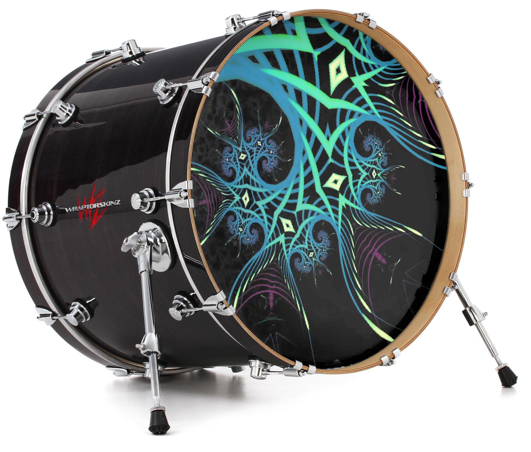This design also available in other sizes. WraptorSkinz® skin wraps compatible with most kick drum heads. Printed using superb photo quality designs and vibrant colors printed with special fade resistant inks that last even in direct sun for years. WraptorSkinz are a composite three layer commercial grade materials vinyl. The bottom layer is a air release, grey block out removable adhesive that hides existing graphics on the drum head and is easily applied without air bubbles. The middle layer is a flexible vinyl printed with UV protected, fade resistant inks that deliver superb photo quality designs in vibrant colors. Finally, we bond a professional grade laminate over the entire skin adding a glossy protective finish.