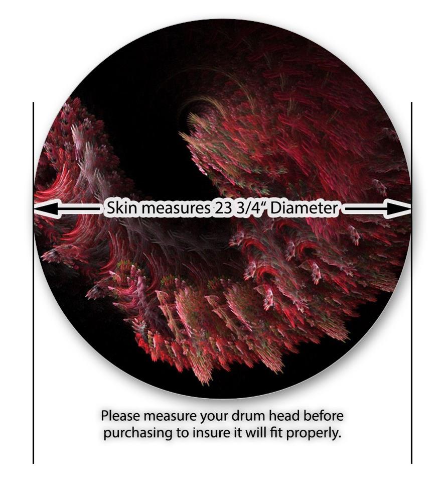 This design also available in other sizes. WraptorSkinz® skin wraps compatible with most kick drum heads. Printed using superb photo quality designs and vibrant colors printed with special fade resistant inks that last even in direct sun for years. WraptorSkinz are a composite three layer commercial grade materials vinyl. The bottom layer is a air release, grey block out removable adhesive that hides existing graphics on the drum head and is easily applied without air bubbles. The middle layer is a flexible vinyl printed with UV protected, fade resistant inks that deliver superb photo quality designs in vibrant colors. Finally, we bond a professional grade laminate over the entire skin adding a glossy protective finish.