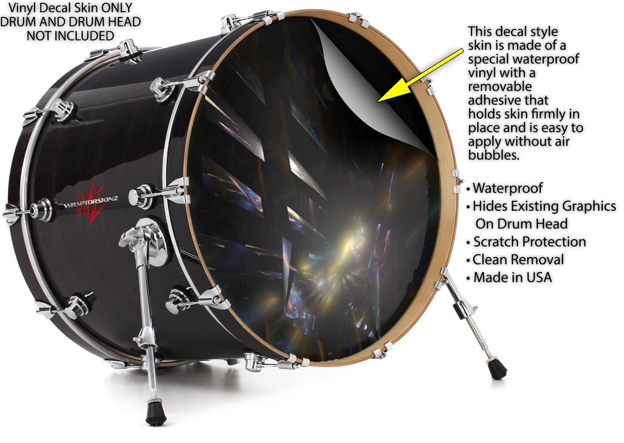 This design also available in other sizes. WraptorSkinz® skin wraps compatible with most kick drum heads. Printed using superb photo quality designs and vibrant colors printed with special fade resistant inks that last even in direct sun for years. WraptorSkinz are a composite three layer commercial grade materials vinyl. The bottom layer is a air release, grey block out removable adhesive that hides existing graphics on the drum head and is easily applied without air bubbles. The middle layer is a flexible vinyl printed with UV protected, fade resistant inks that deliver superb photo quality designs in vibrant colors. Finally, we bond a professional grade laminate over the entire skin adding a glossy protective finish.