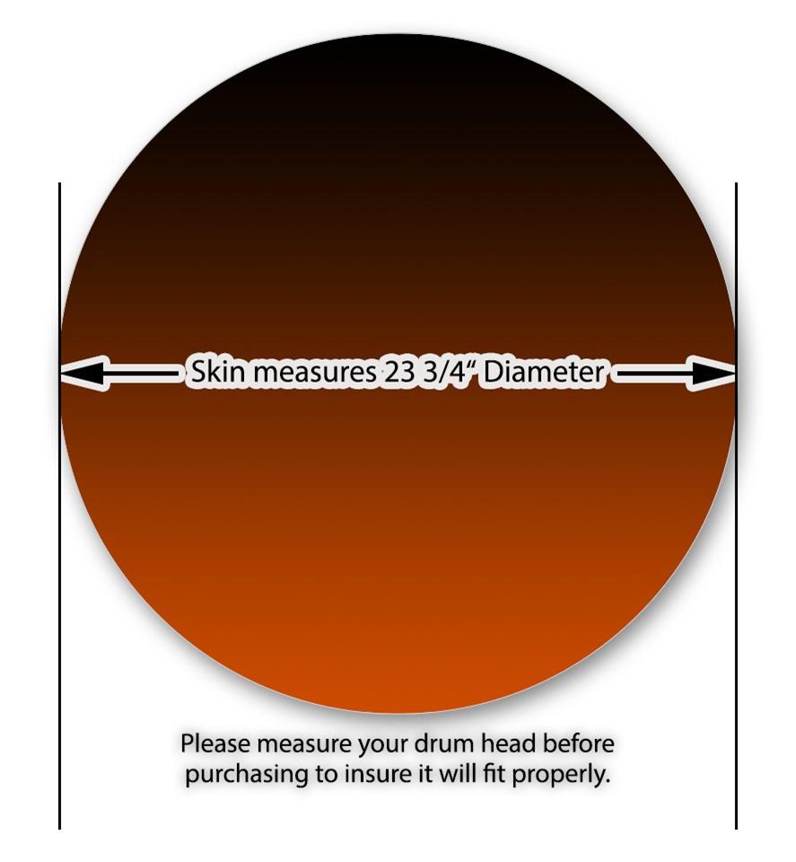 This design also available in other sizes. WraptorSkinz® skin wraps compatible with most kick drum heads. Printed using superb photo quality designs and vibrant colors printed with special fade resistant inks that last even in direct sun for years. WraptorSkinz are a composite three layer commercial grade materials vinyl. The bottom layer is a air release, grey block out removable adhesive that hides existing graphics on the drum head and is easily applied without air bubbles. The middle layer is a flexible vinyl printed with UV protected, fade resistant inks that deliver superb photo quality designs in vibrant colors. Finally, we bond a professional grade laminate over the entire skin adding a glossy protective finish.