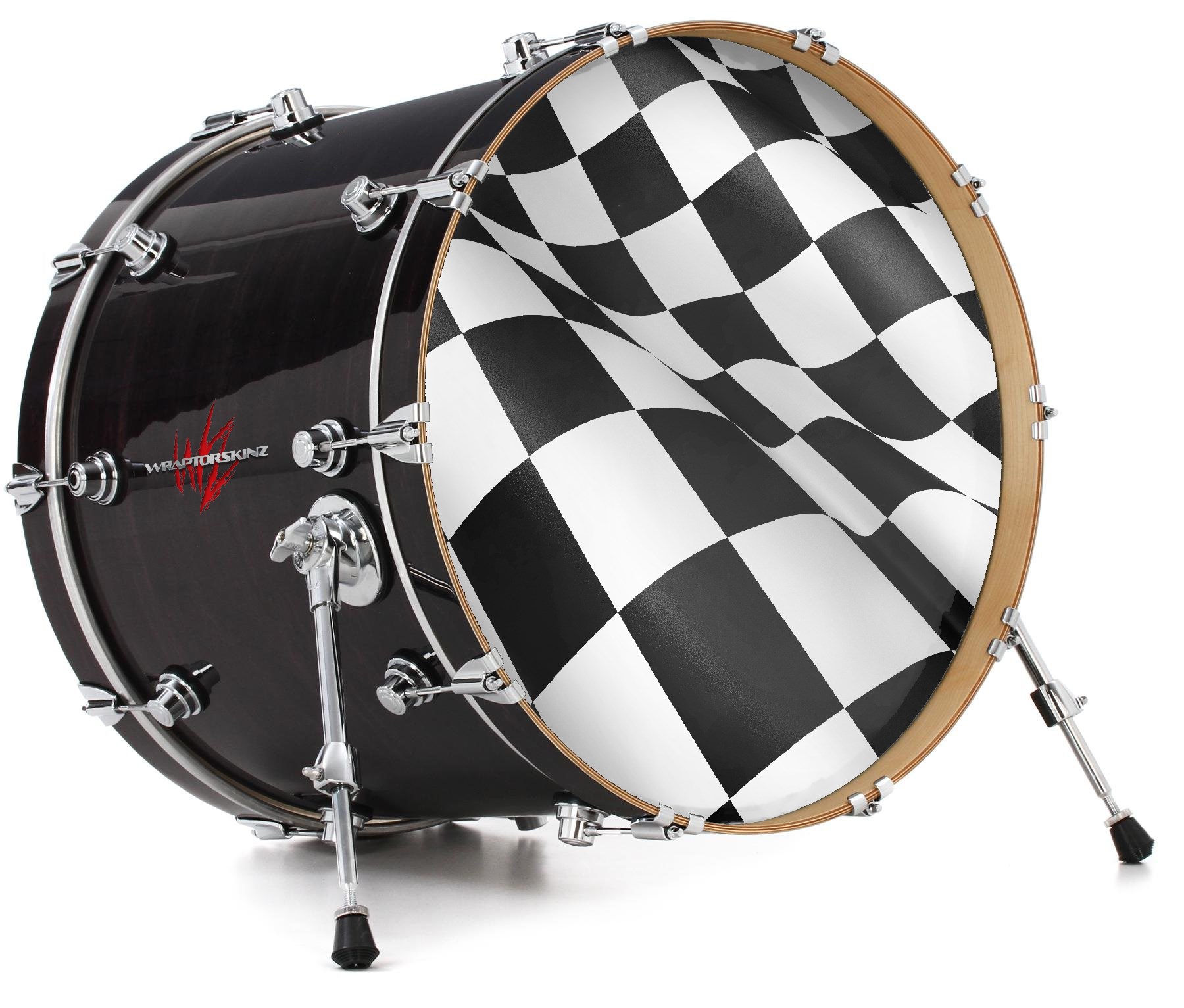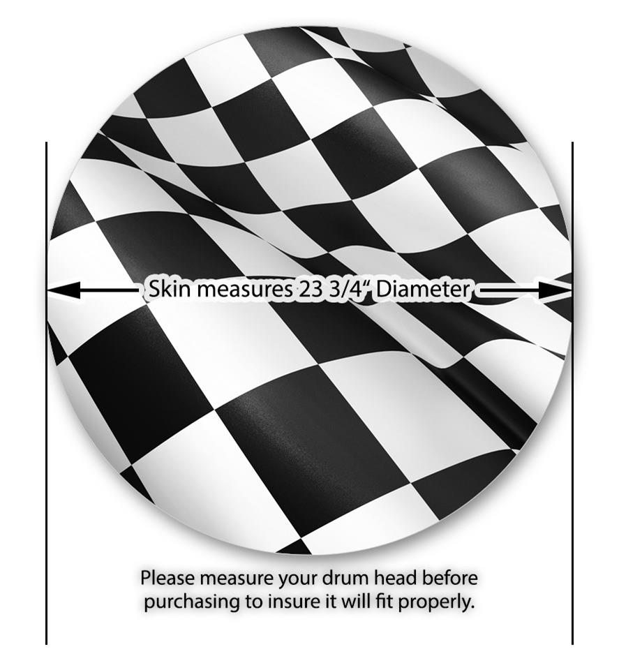 Decal Skin works with most 24" Bass Kick Drum Heads Checkered Flag - DRUM HEAD NOT INCLUDED