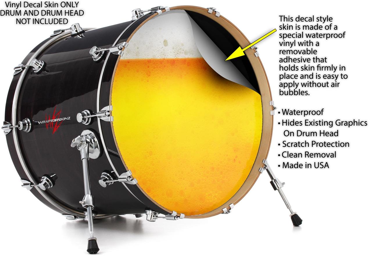 Decal Skin works with most 24" Bass Kick Drum Heads Beer - DRUM HEAD NOT INCLUDED