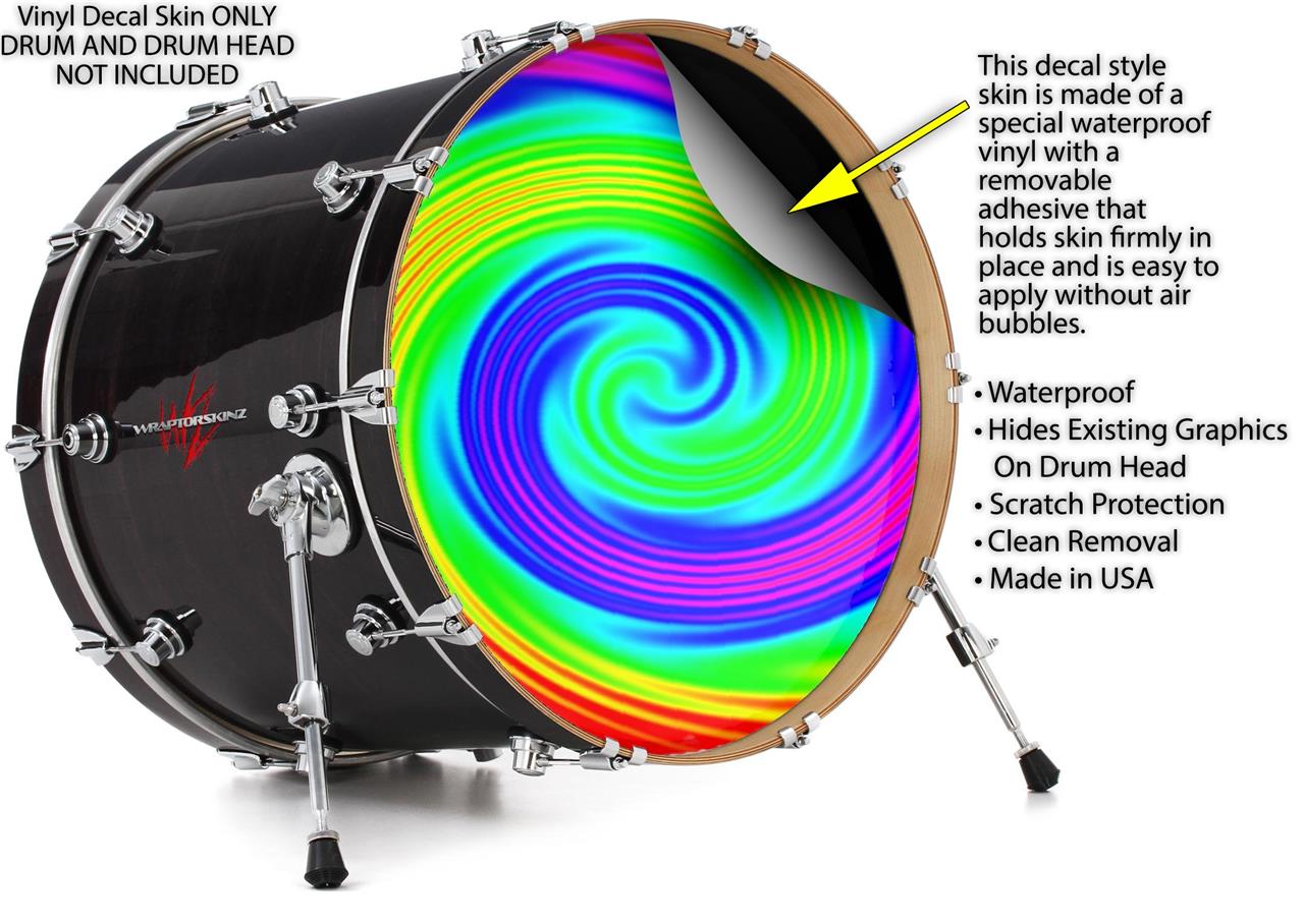 Decal Skin works with most 24" Bass Kick Drum Heads Rainbow Swirl - DRUM HEAD NOT INCLUDED