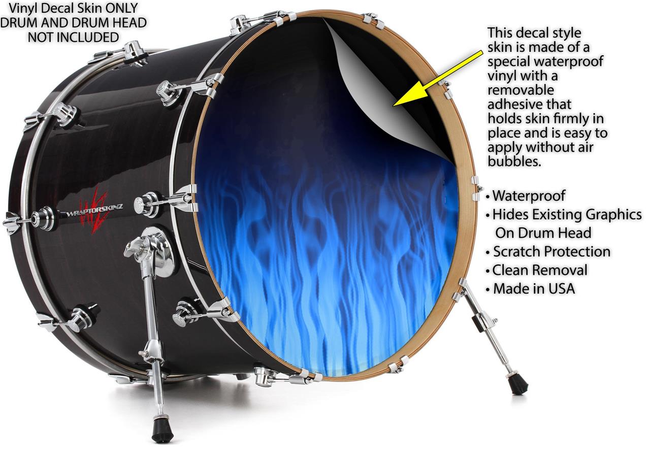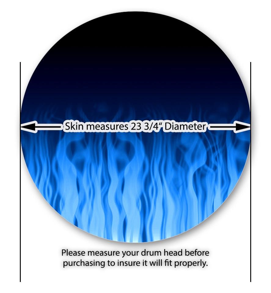 Decal Skin works with most 24" Bass Kick Drum Heads Fire Flames Blue - DRUM HEAD NOT INCLUDED