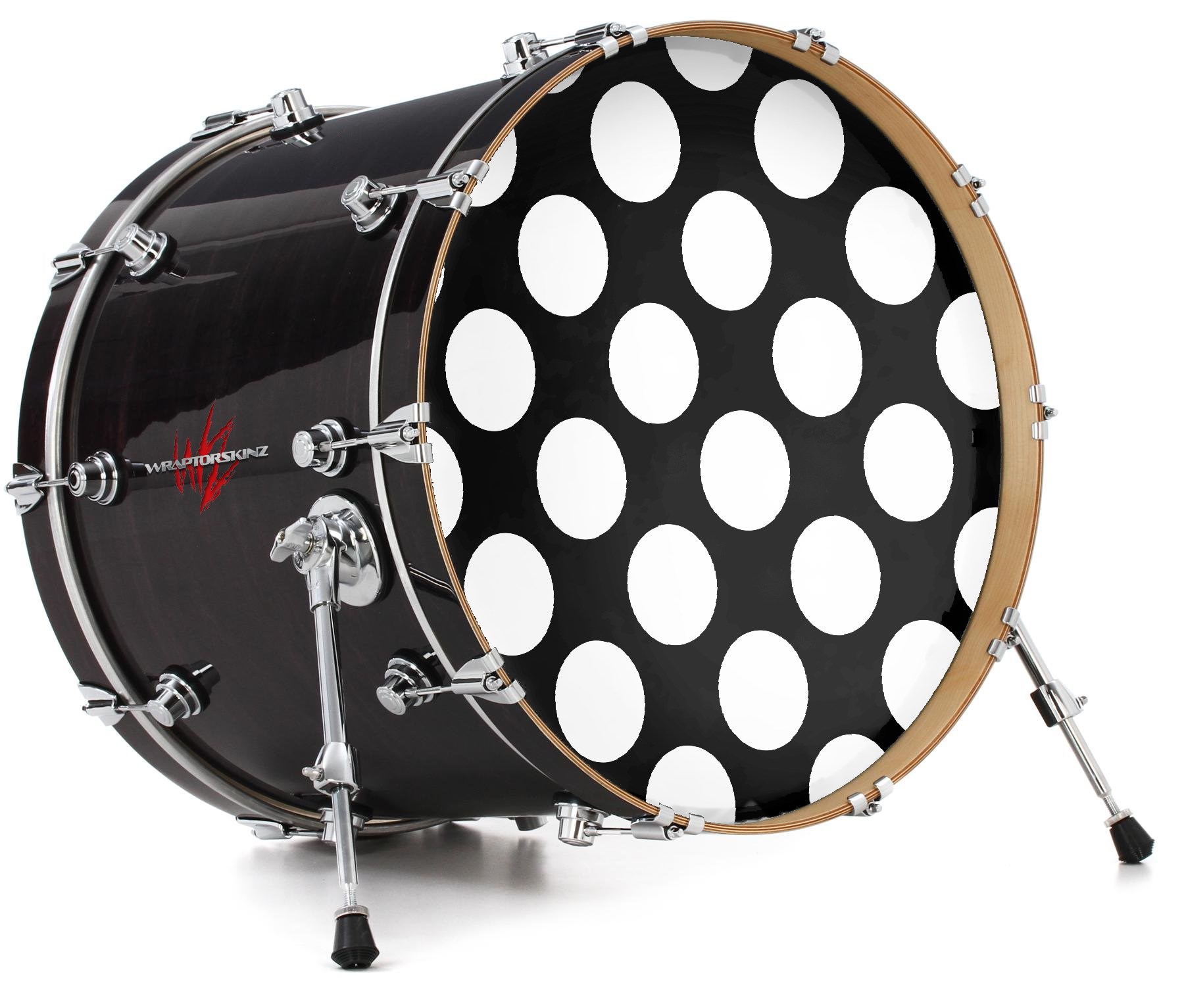Decal Skin works with most 24" Bass Kick Drum Heads Kearas Polka Dots White On Black - DRUM HEAD NOT INCLUDED