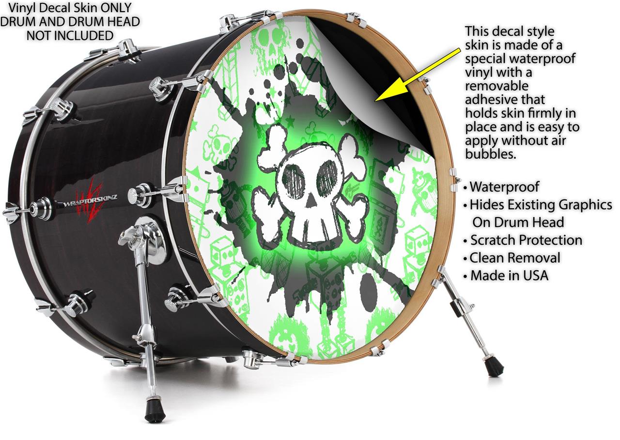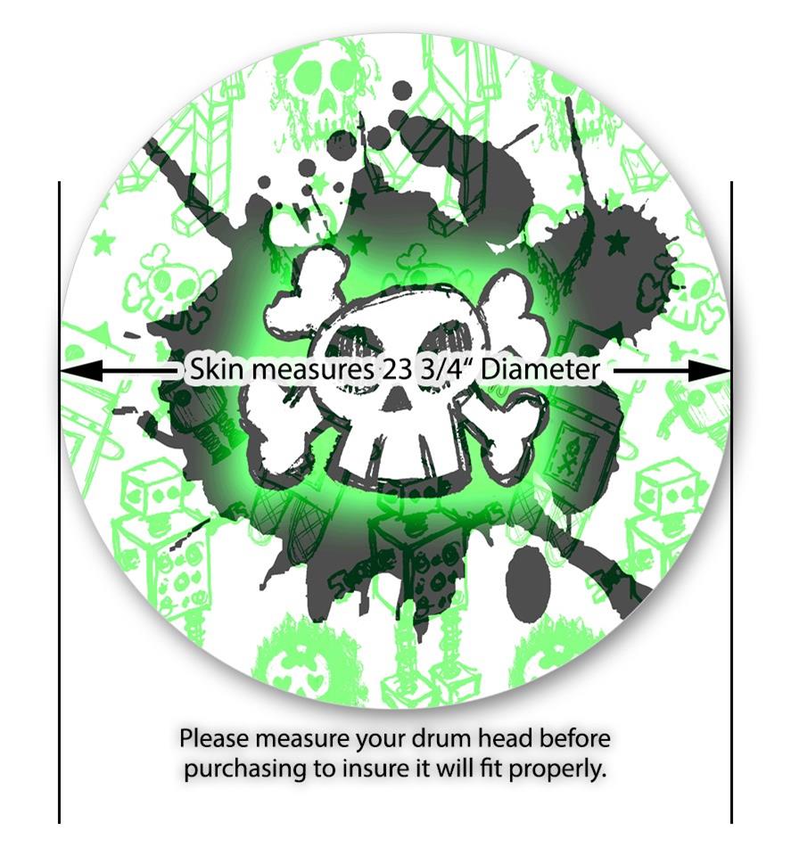 Decal Skin works with most 24" Bass Kick Drum Heads Cartoon Skull Green - DRUM HEAD NOT INCLUDED
