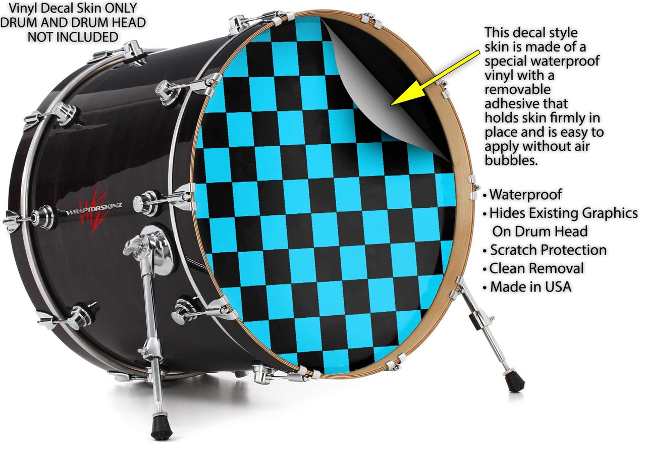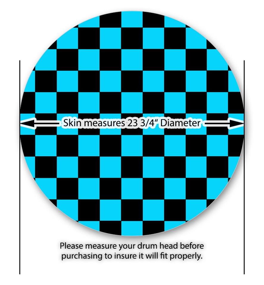 Decal Skin works with most 24" Bass Kick Drum Heads Checkers Blue - DRUM HEAD NOT INCLUDED