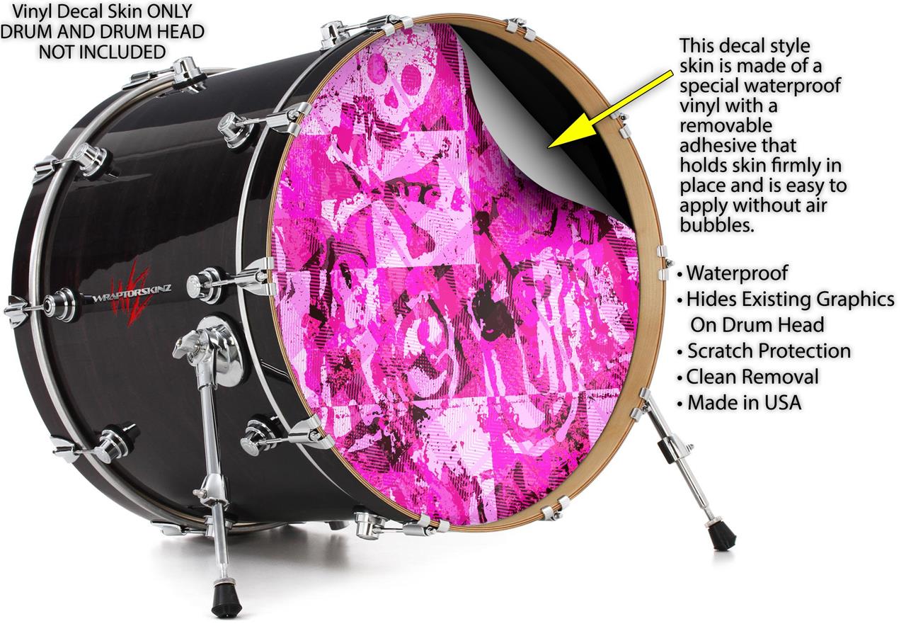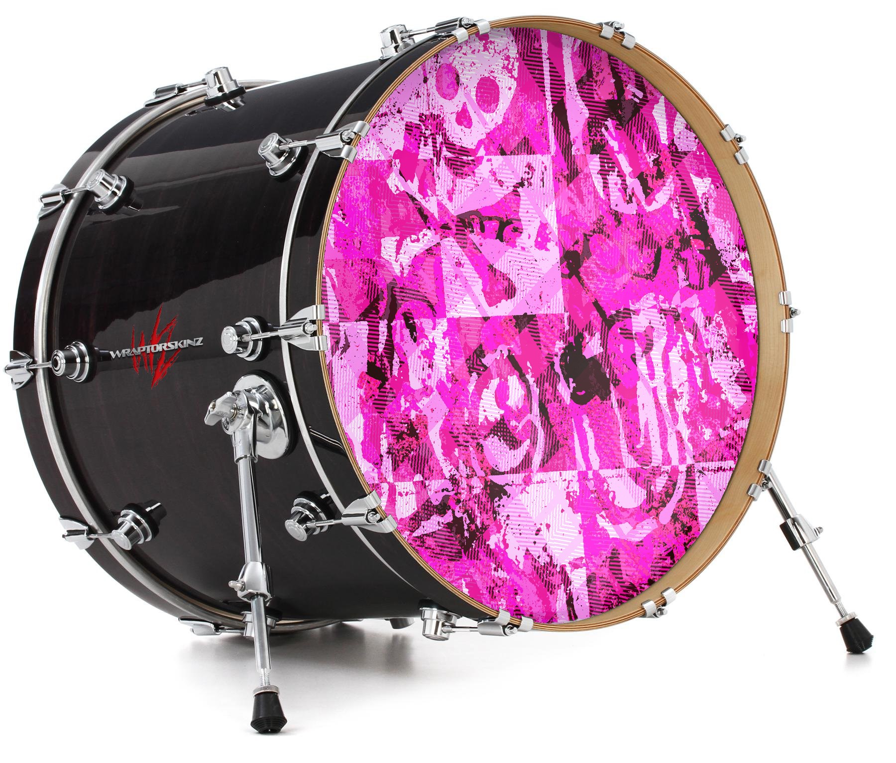 Decal Skin works with most 24" Bass Kick Drum Heads Pink Plaid Graffiti - DRUM HEAD NOT INCLUDED