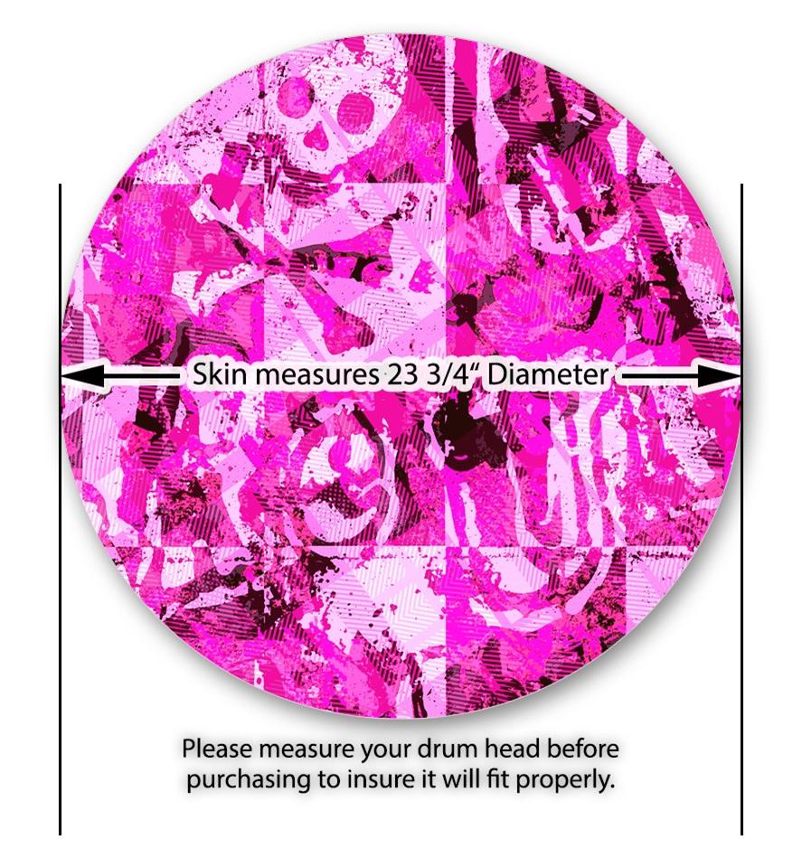 This design also available in other sizes. WraptorSkinz® skin wraps compatible with most kick drum heads. Printed using superb photo quality designs and vibrant colors printed with special fade resistant inks that last even in direct sun for years. WraptorSkinz are a composite three layer commercial grade materials vinyl. The bottom layer is a air release, grey block out removable adhesive that hides existing graphics on the drum head and is easily applied without air bubbles. The middle layer is a flexible vinyl printed with UV protected, fade resistant inks that deliver superb photo quality designs in vibrant colors. Finally, we bond a professional grade laminate over the entire skin adding a glossy protective finish.
