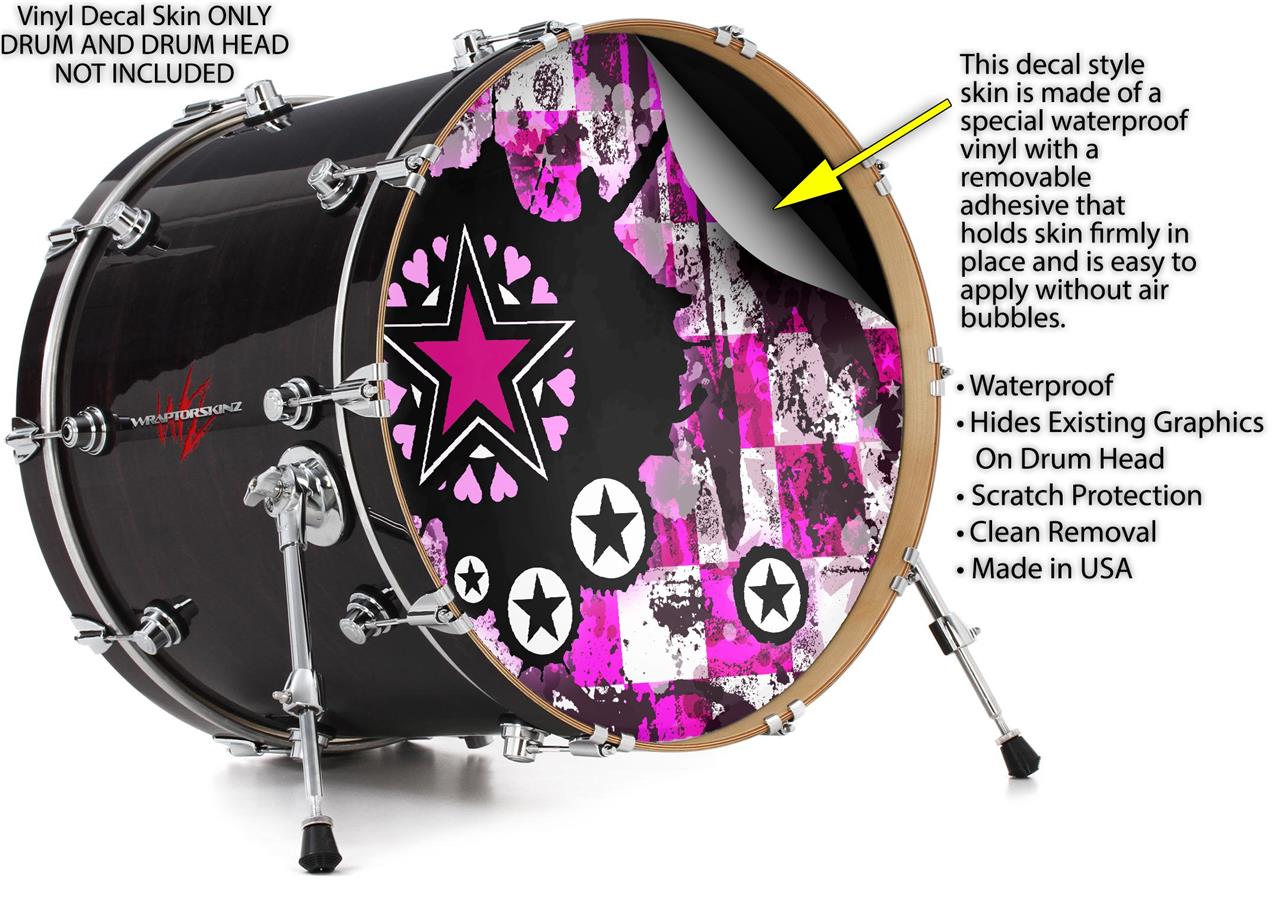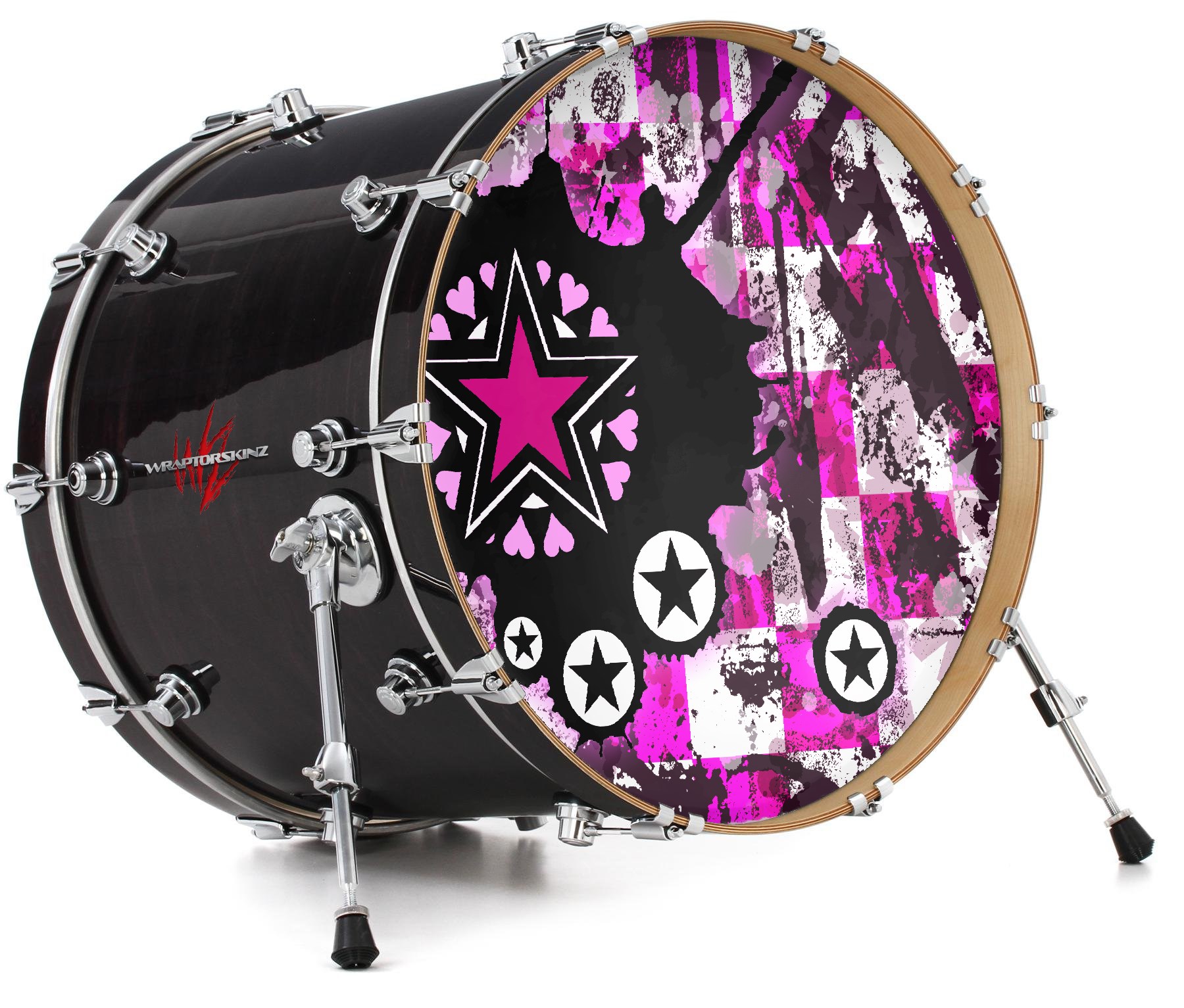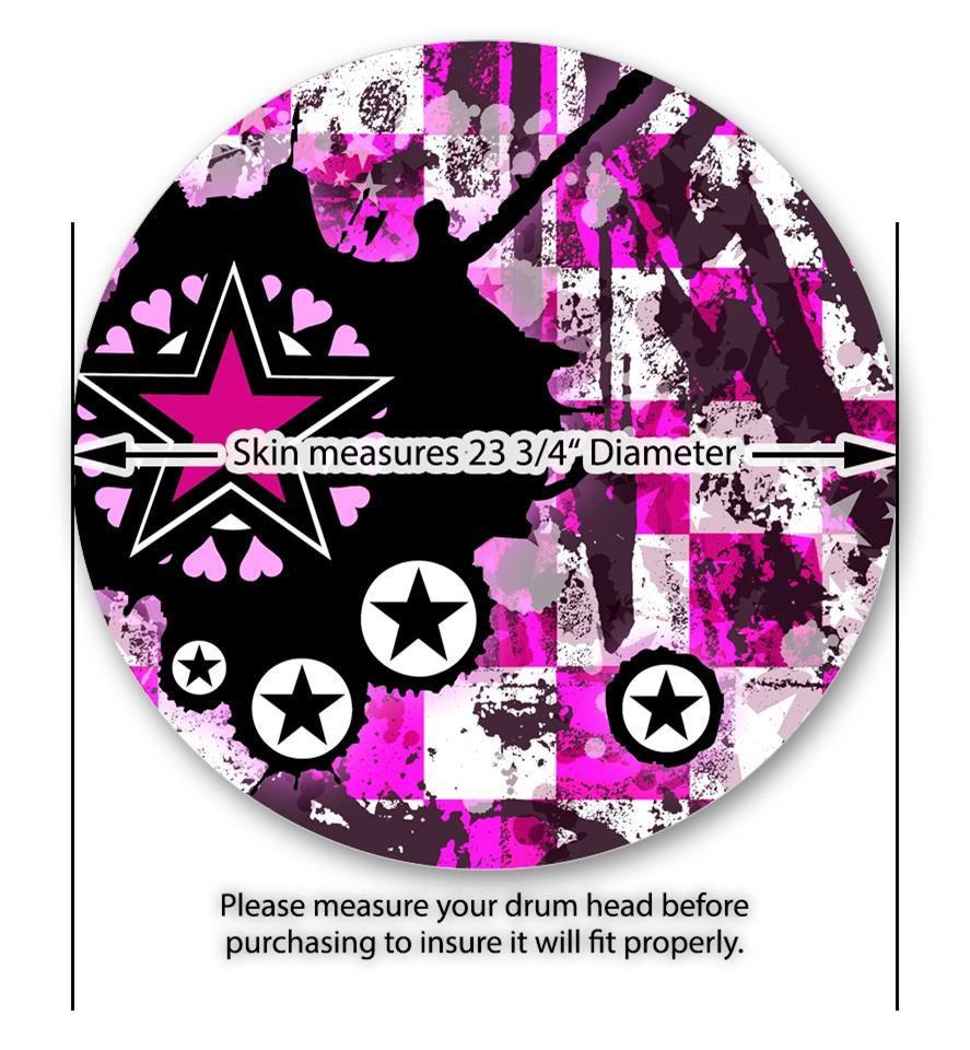 Decal Skin works with most 24" Bass Kick Drum Heads Pink Star Splatter - DRUM HEAD NOT INCLUDED