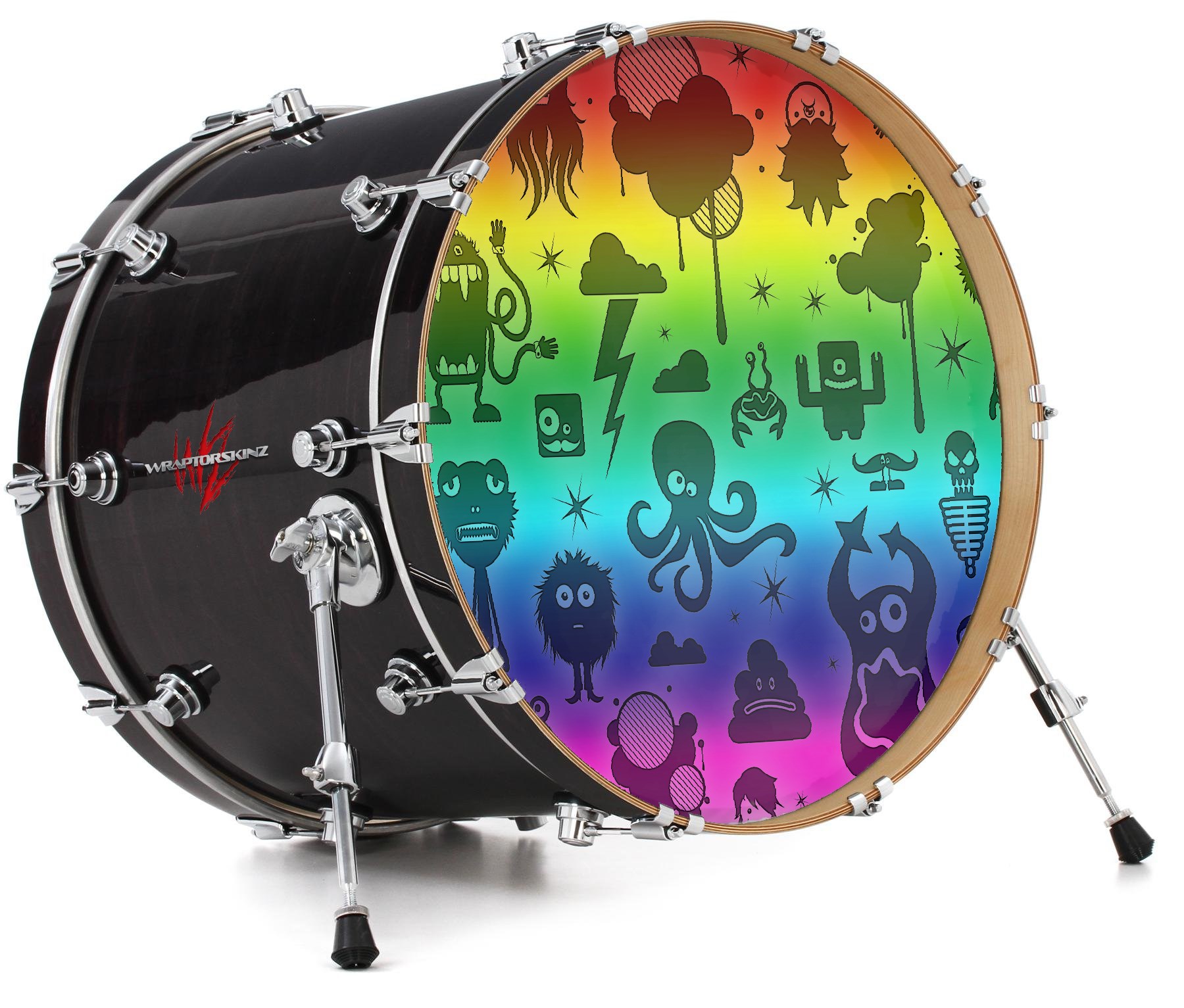 Decal Skin works with most 24" Bass Kick Drum Heads Cute Rainbow Monsters - DRUM HEAD NOT INCLUDED