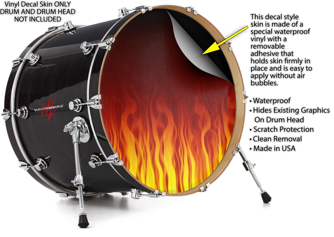 Decal Skin works with most 26" Bass Kick Drum Heads Fire Flames on Black - DRUM HEAD NOT INCLUDED