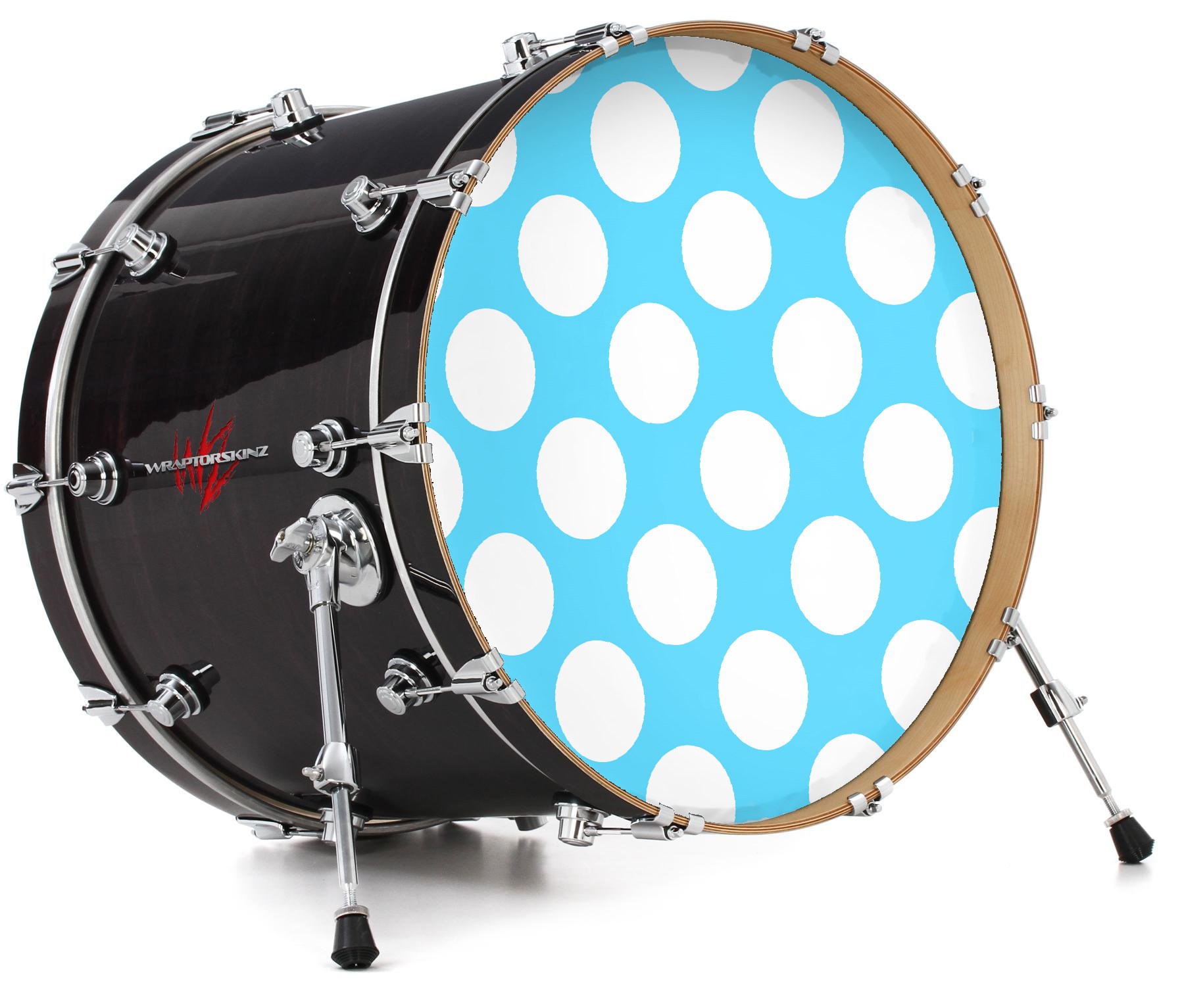 Decal Skin works with most 26" Bass Kick Drum Heads Kearas Polka Dots White And Blue - DRUM HEAD NOT INCLUDED