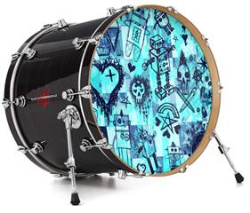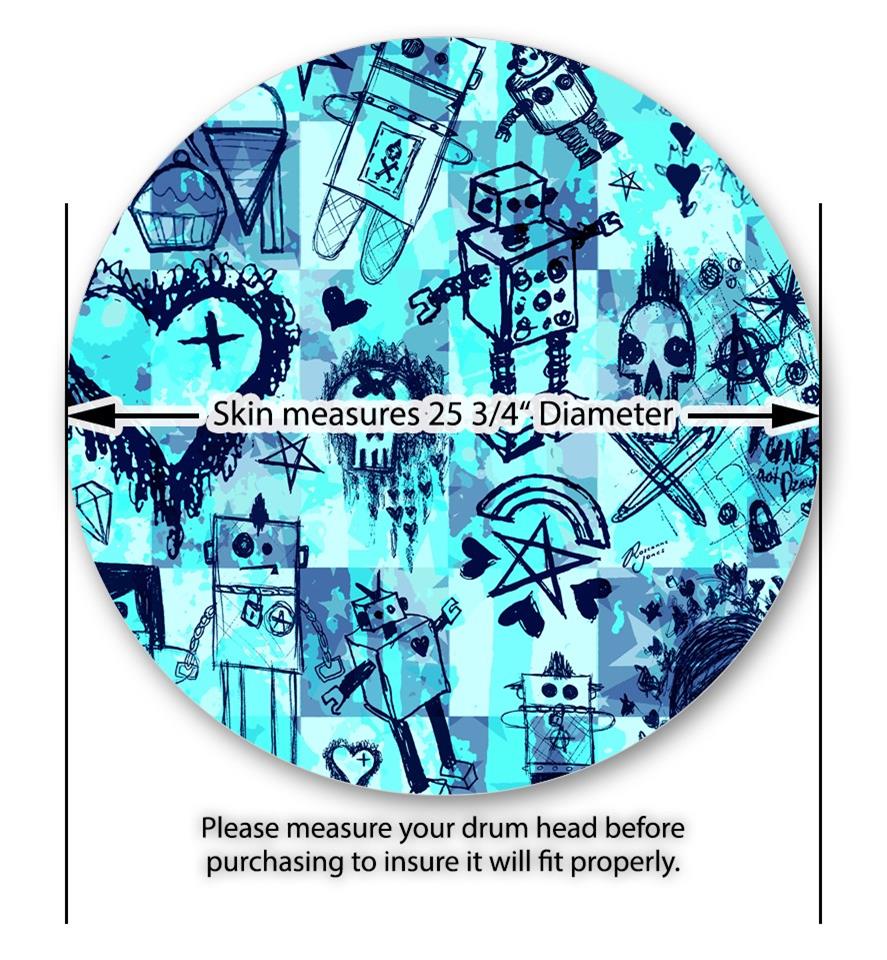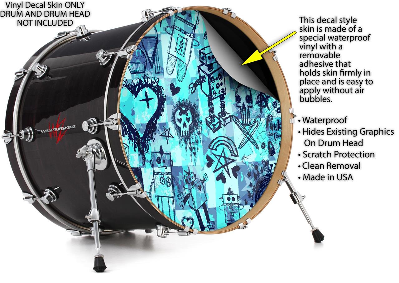 Decal Skin works with most 26" Bass Kick Drum Heads Scene Kid Sketches Blue - DRUM HEAD NOT INCLUDED