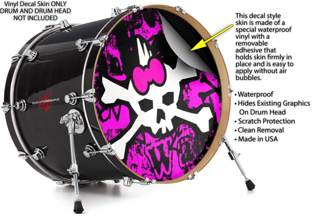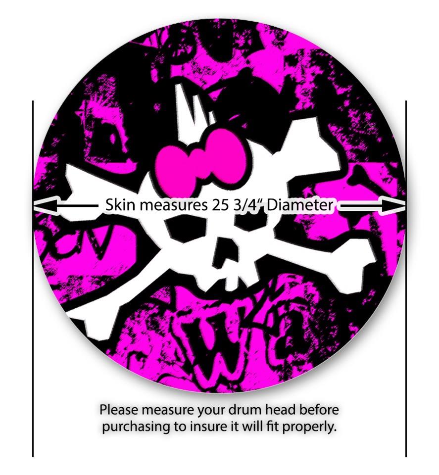 Decal Skin works with most 26" Bass Kick Drum Heads Punk Skull Princess - DRUM HEAD NOT INCLUDED