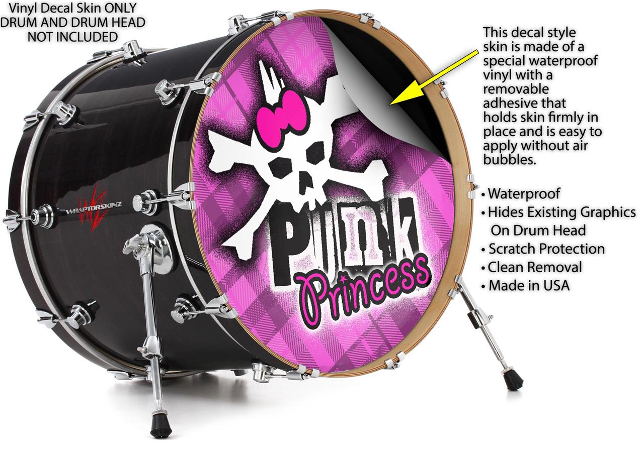 Decal Skin works with most 26" Bass Kick Drum Heads Punk Princess - DRUM HEAD NOT INCLUDED