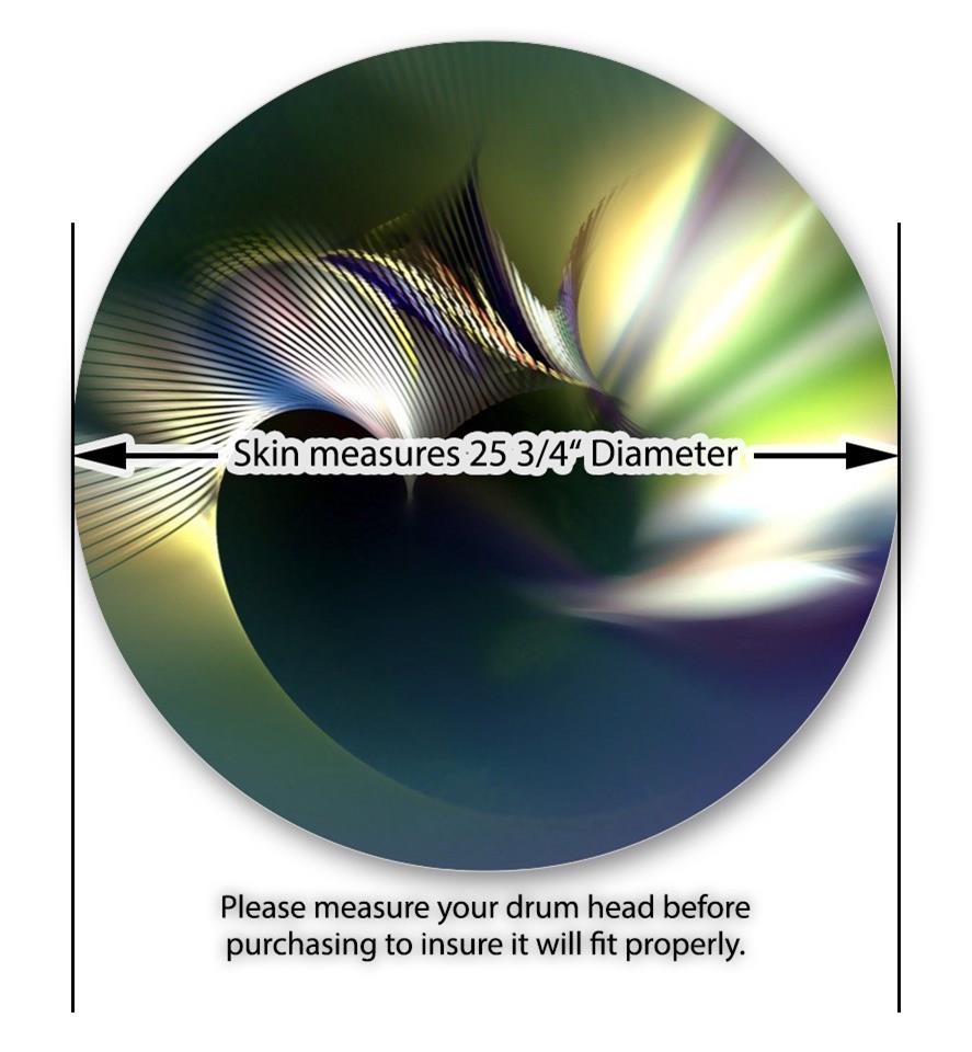 This design also available in other sizes. WraptorSkinz® skin wraps compatible with most kick drum heads. Printed using superb photo quality designs and vibrant colors printed with special fade resistant inks that last even in direct sun for years. WraptorSkinz are a composite three layer commercial grade materials vinyl. The bottom layer is a air release, grey block out removable adhesive that hides existing graphics on the drum head and is easily applied without air bubbles. The middle layer is a flexible vinyl printed with UV protected, fade resistant inks that deliver superb photo quality designs in vibrant colors. Finally, we bond a professional grade laminate over the entire skin adding a glossy protective finish.