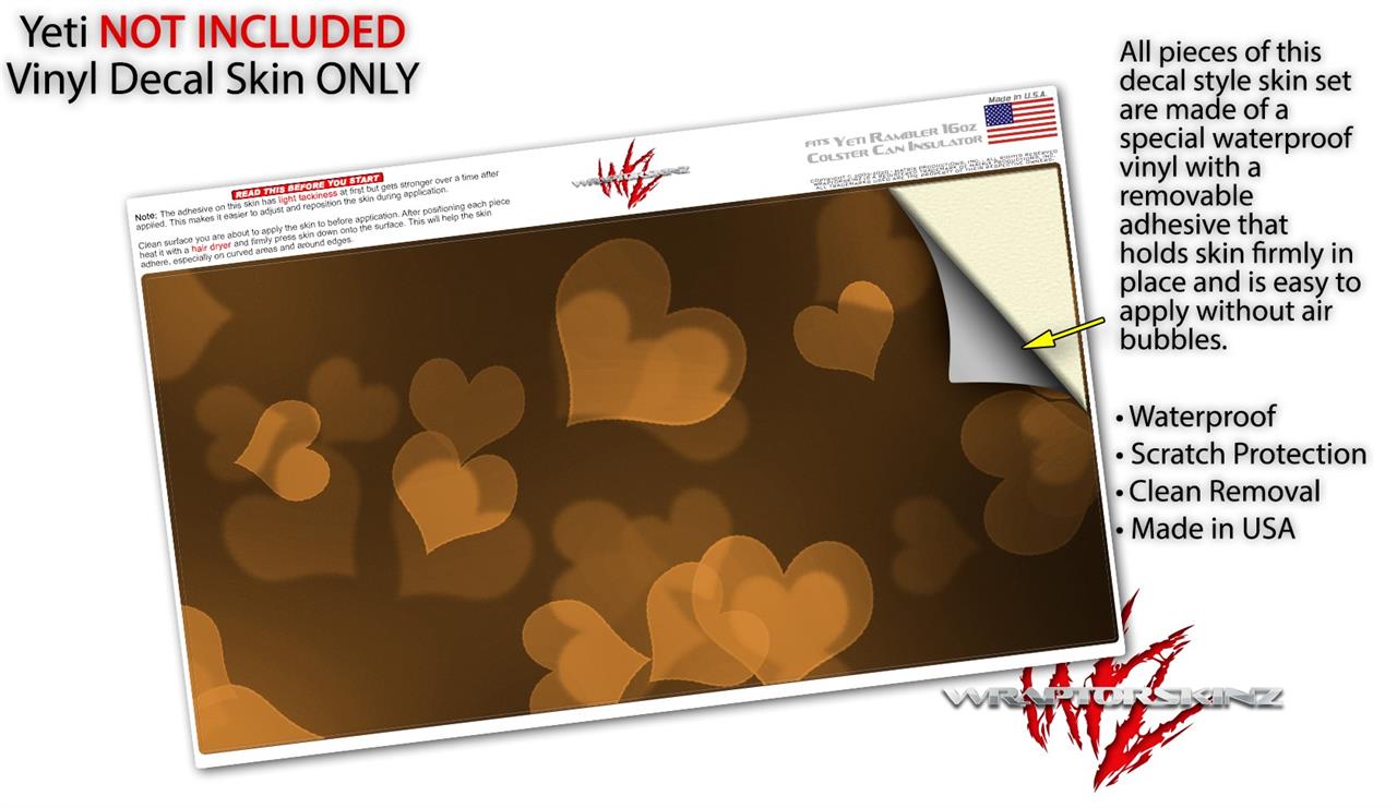 WraptorSkinz Skin Decal Wrap compatible with Yeti 16oz Tall Colster Can Cooler Insulator Bokeh Hearts Orange (COOLER NOT INCLUDED)