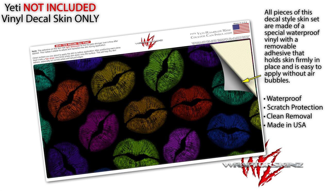 WraptorSkinz Skin Decal Wrap compatible with Yeti 16oz Tall Colster Can Cooler Insulator Rainbow Lips Black (COOLER NOT INCLUDED)