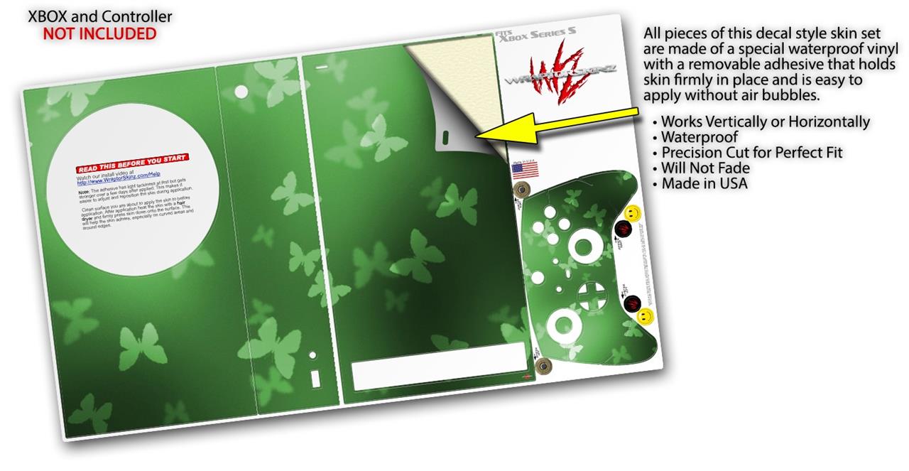 WraptorSkinz Skin Wrap compatible with the 2020 XBOX Series S Console and Controller Bokeh Butterflies Green (XBOX NOT INCLUDED)