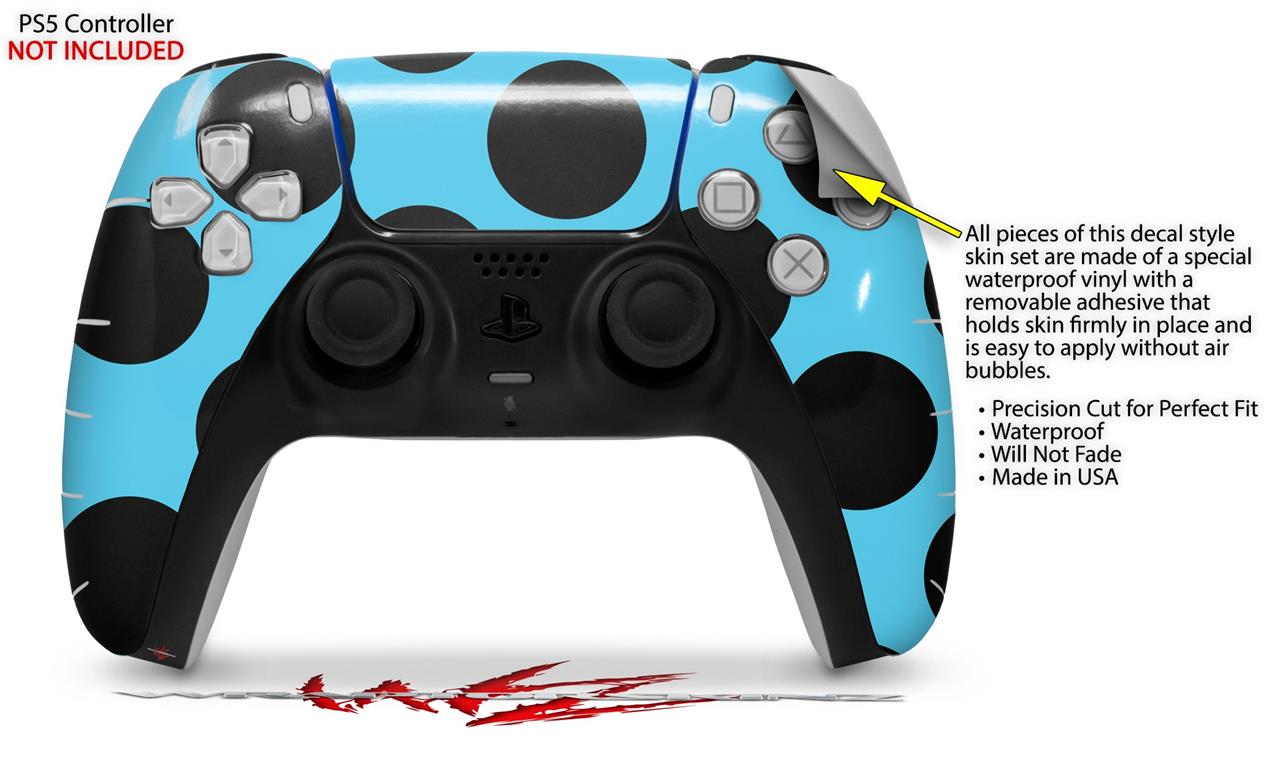 WraptorSkinz Skin Wrap compatible with the Sony PS5 DualSense Controller Kearas Polka Dots Black And Blue (CONTROLLER NOT INCLUDED)