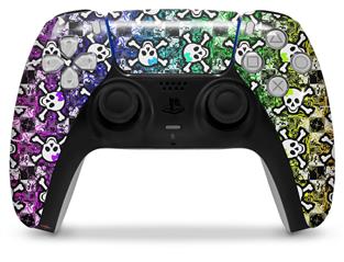WraptorSkinz Skin Wrap compatible with the Sony PS5 DualSense Controller Splatter Girly Skull Rainbow (CONTROLLER NOT INCLUDED)