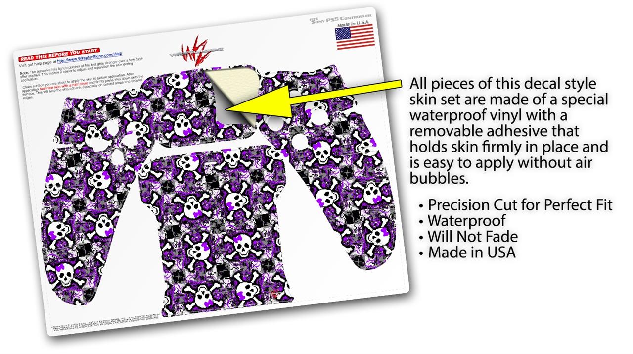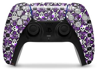 WraptorSkinz Skin Wrap compatible with the Sony PS5 DualSense Controller Splatter Girly Skull Purple (CONTROLLER NOT INCLUDED)