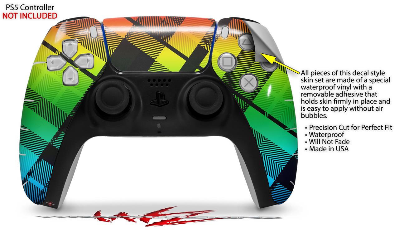 WraptorSkinz Skin Wrap compatible with the Sony PS5 DualSense Controller Rainbow Plaid (CONTROLLER NOT INCLUDED)